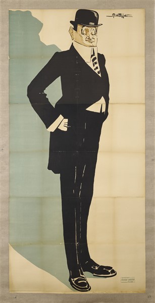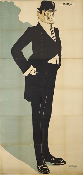 Manifesto pubblicitario raffigurante Ettore Petrolini, Officine Pilade Rocco Milano
