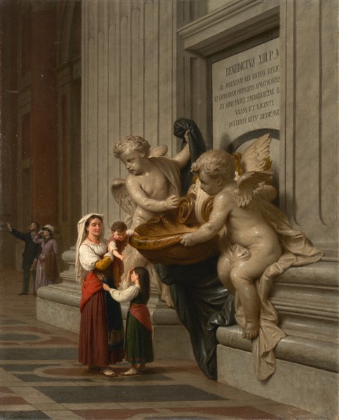 Raffaele Casnedi "Benedizione - Basilica di San Pietro, Roma" olio su tela (cm