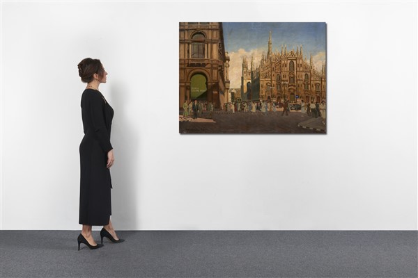 Annibale Scaroni "Milano - Piazza del Duomo" 1955 olio su tela (cm 100x130) firm
