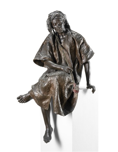Gaston Veuvenot Leroux "Il fumatore" scultura in bronzo (cm 87x40) firmata al r
