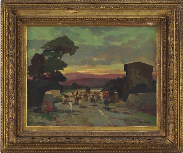 Lot 80 | Renato Natali "Gregge" olio su masonite (cm 49x67) firmato in basso a destra al