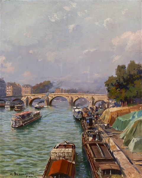 Carlo Brancaccio "La Senna" Parigi olio su tavola (cm 47x38) firmato e locato in