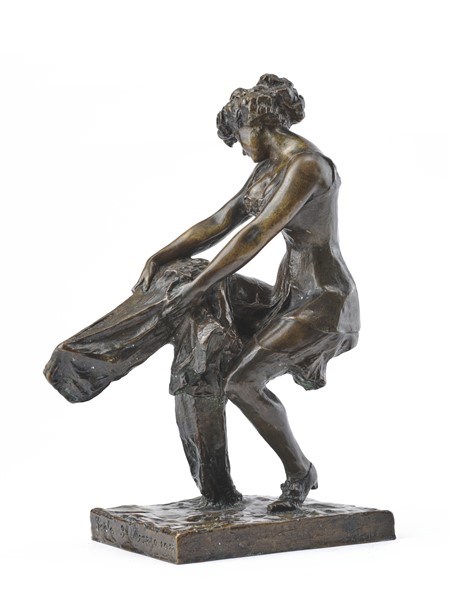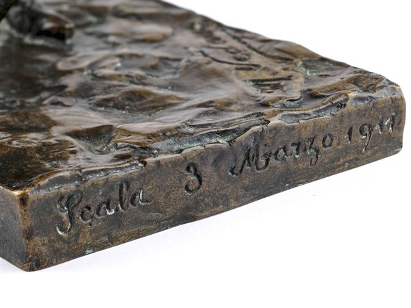 Michele Vedani "Cambio d'abito" Scala, 3 marzo 1911 scultura in bronzo (cm 31x21