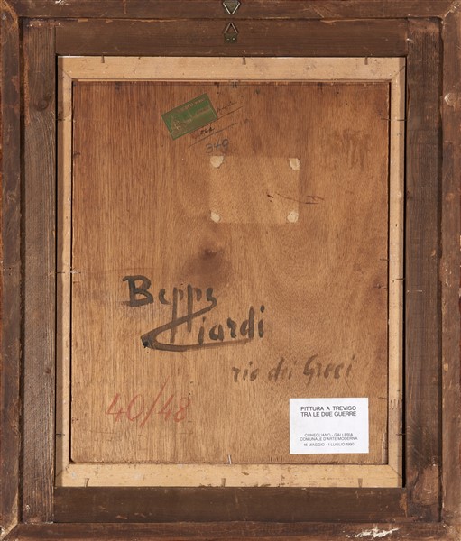 Beppe Ciardi "Rio dei Greci" olio su compensato (cm 48x40) al retro: firma, tit