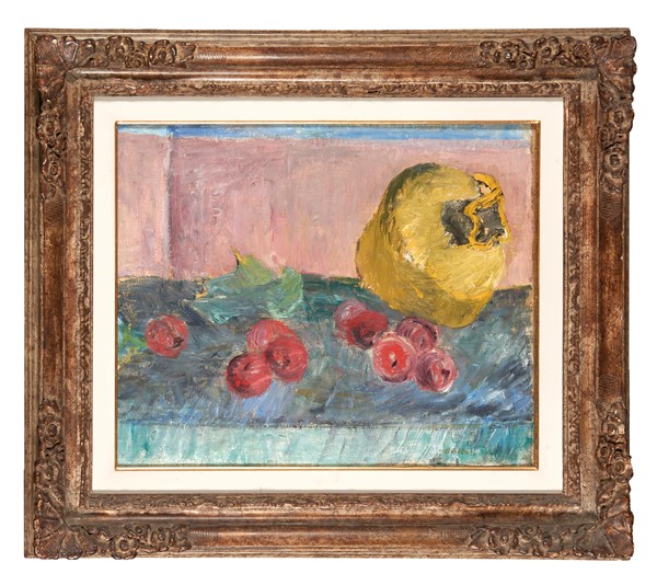 Angelo Del Bon "Prugne e anfora" 1941 olio su tela (cm 38x46) firmato in basso a