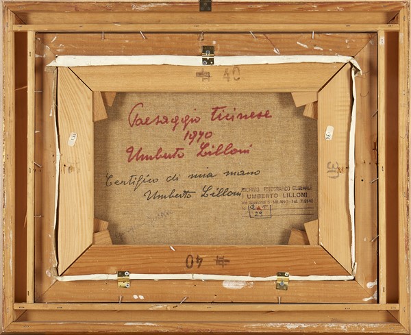 al retro: titolato, datato e firmato; iscrizione per autentica del pittore e timbro dell'Archivio Fotografico Generale "Umberto Lilloni", Milano.