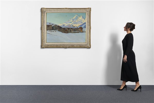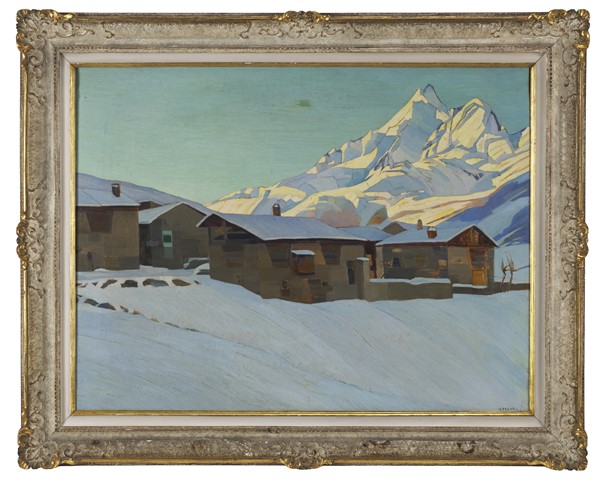 Virgilio Freno "Mattino d'Inverno, Valtellina" olio su tela (cm 76x98) firmato
