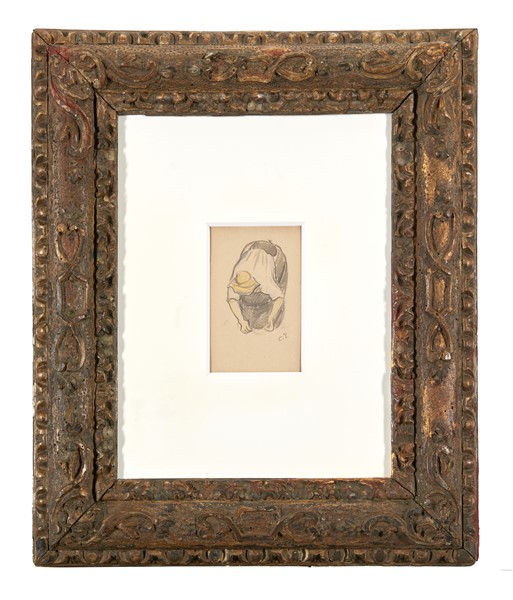 Camille Pissarro "La spigolatrice" matita e acquerello su carta (cm 15x9) sigla