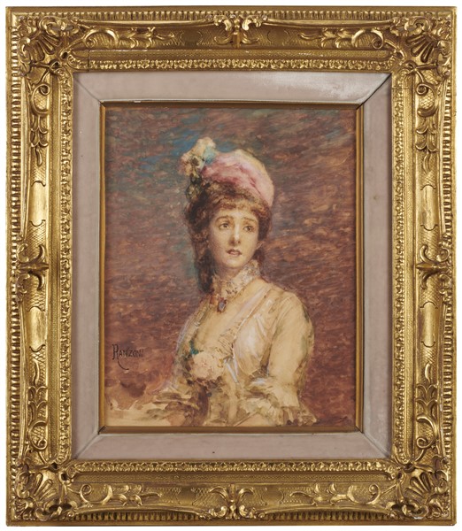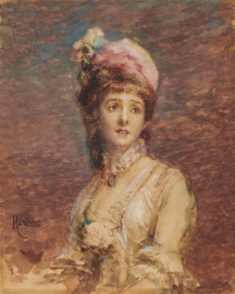 Daniele Ranzoni "Ritratto di dama con cappello" acquerello su carta applicata a