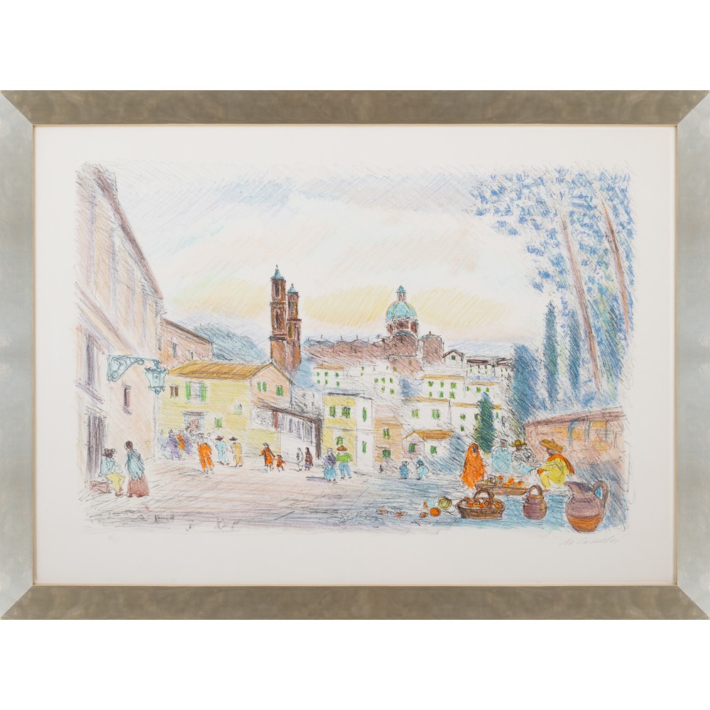 MICHELE CASCELLA, Piazza di paese, Litografia a colori