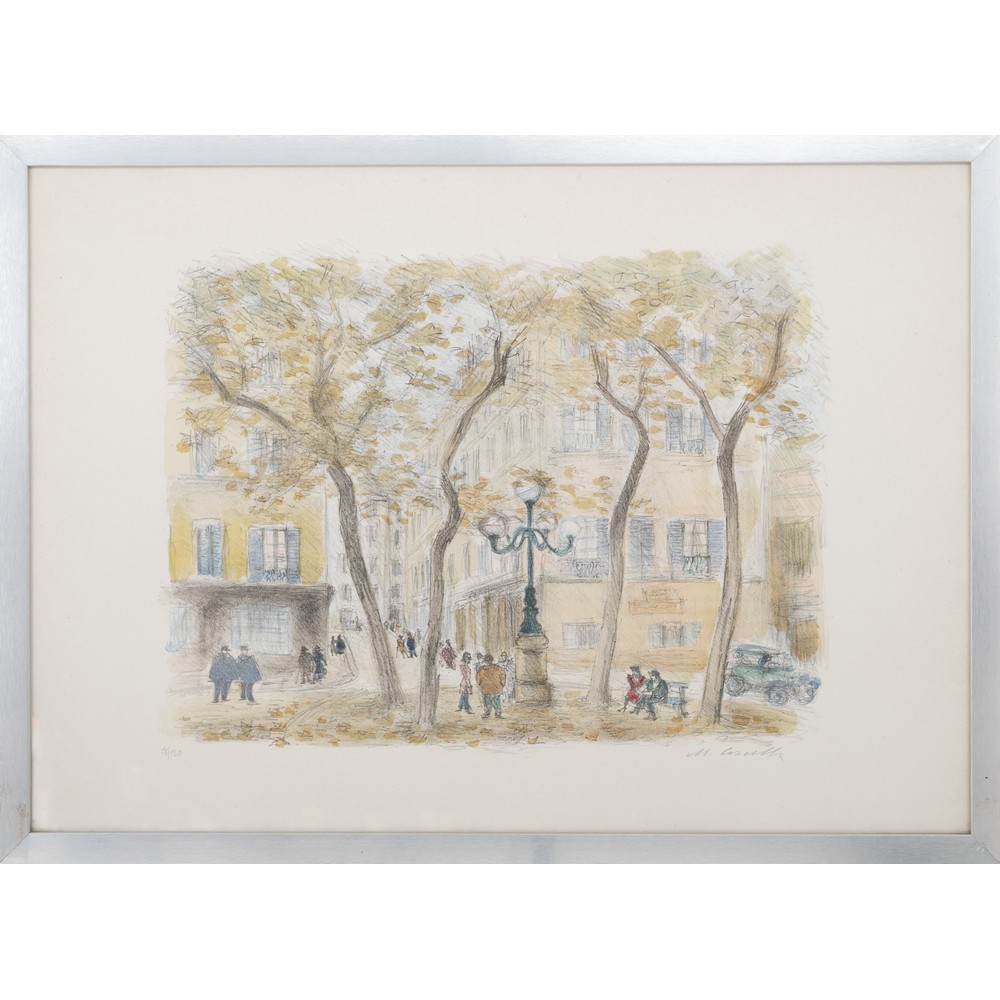 MICHELE CASCELLA, Piazza con personaggi, Litografia a colori