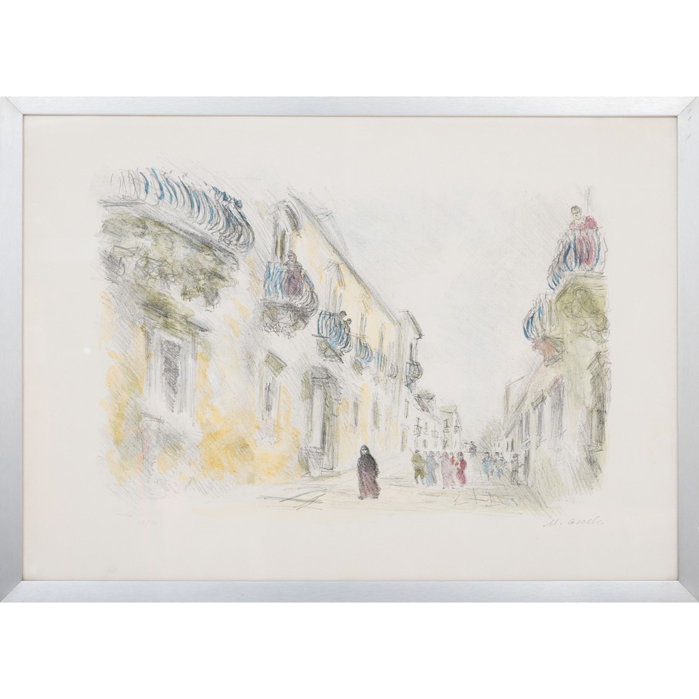 MICHELE CASCELLA, Scorcio di paese, Litografia a colori