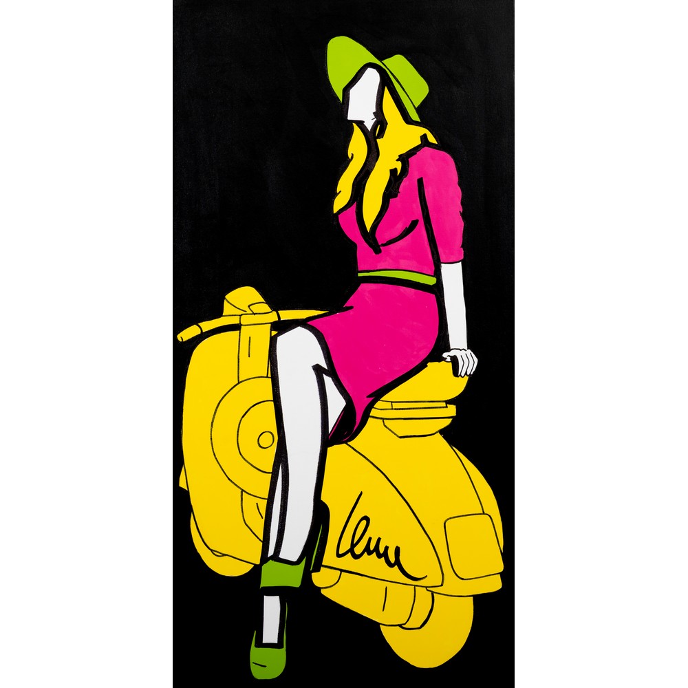MARCO LODOLA, Pin up in vespa, Olio su tela