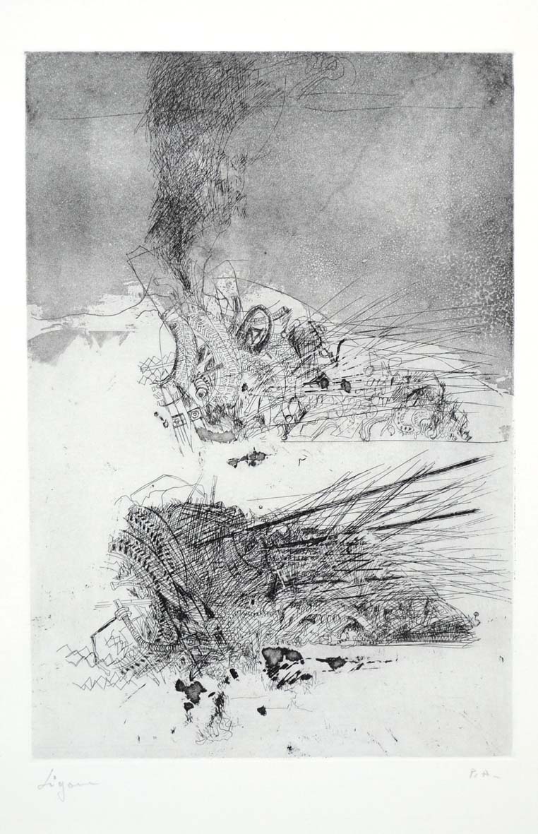 ZIGAINA GIUSEPPE Cervignano del Friuli 1924 senza titolo acquaforte es. p.a. 51x33(lastra) 70x50(foglio) firma in basso a sinistra tiratura in basso a destra