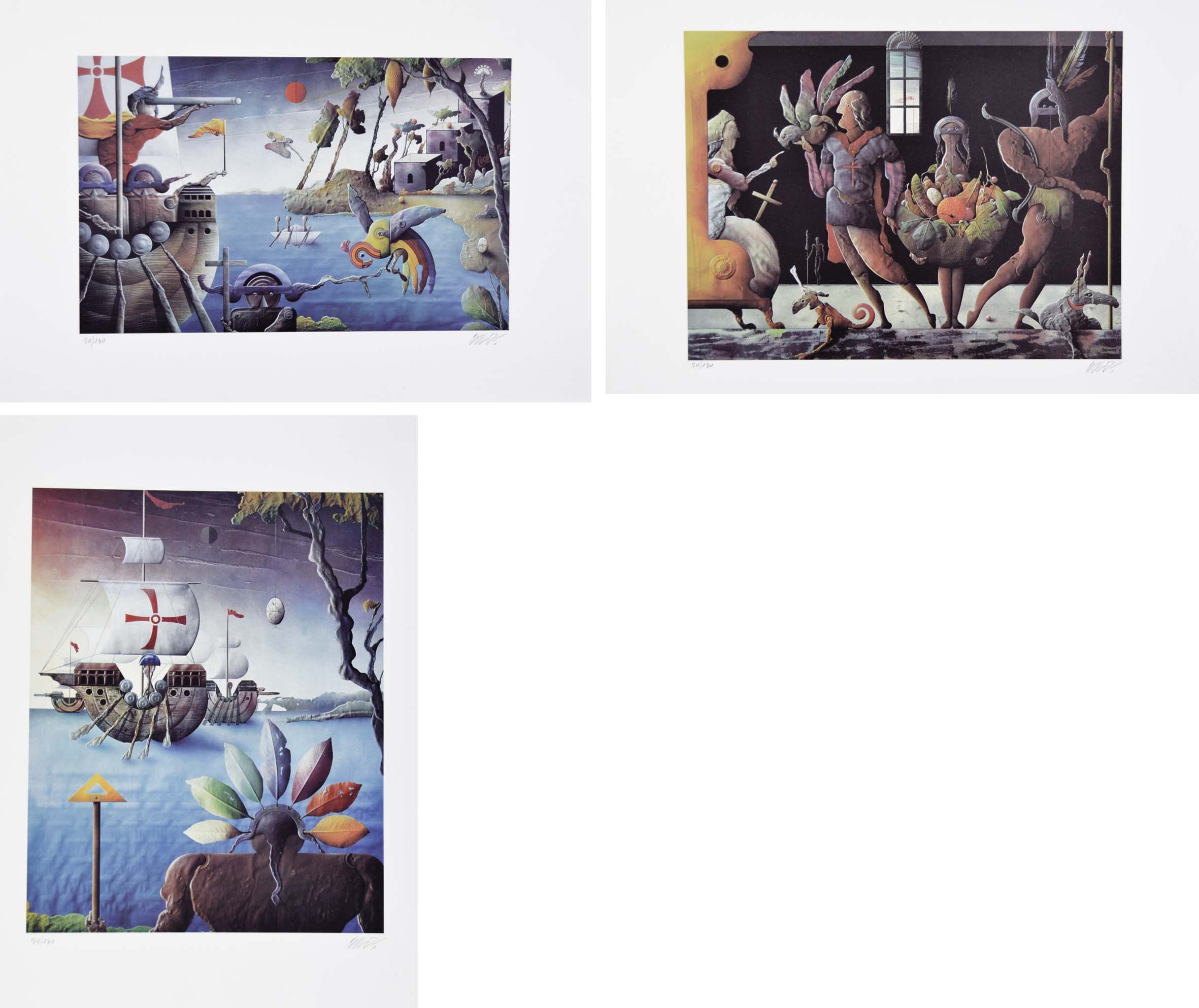 GOLDSCHMIEDT MILAN Zagabria 1931 Columbus 1992 cartella contenente 3 litografie es. 50/130 50x70 cad. firma in basso a destra tiratura in basso a sinistra Editrice d'Arte Castaldi Feltre; timbro a secco MILAN GOLDSCHMIEDT in basso a destra