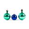 Tre palle in vetro dipinto nei toni del verde e del blu per decorazioni natalizie.