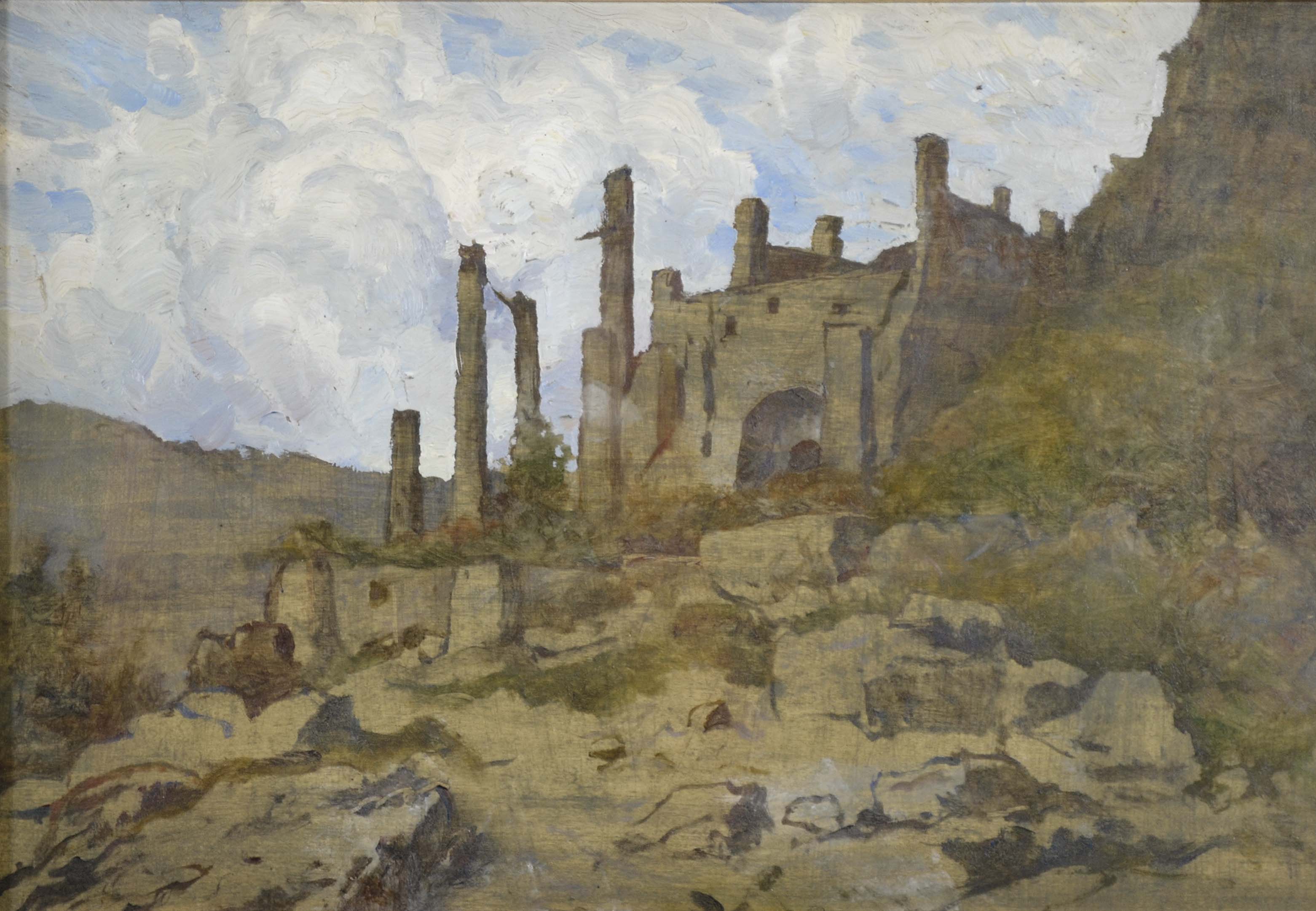 MAZZETTI EMO Treviso 1870 - Venezia 1955 Paesaggio olio su tavola 30x43 del figlio Elio Mazzetti al retro