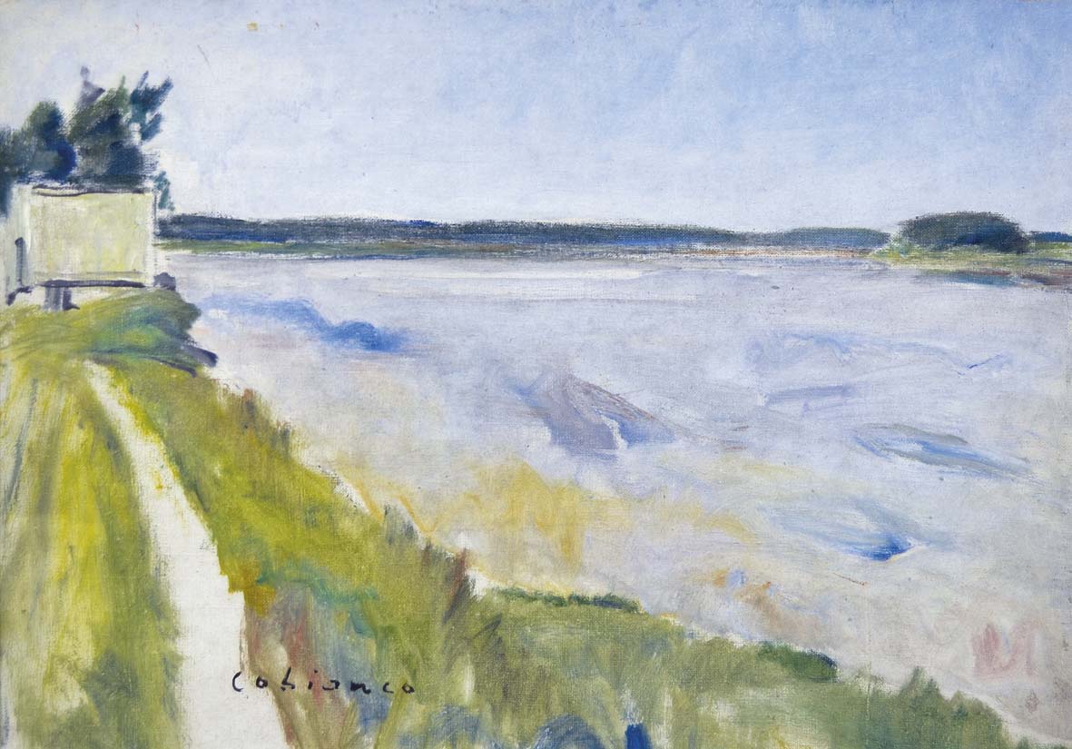 COBIANCO LUIGI Villanova Marchesana 1893 - Mestre 1967 Lungo il Po 1958 olio...