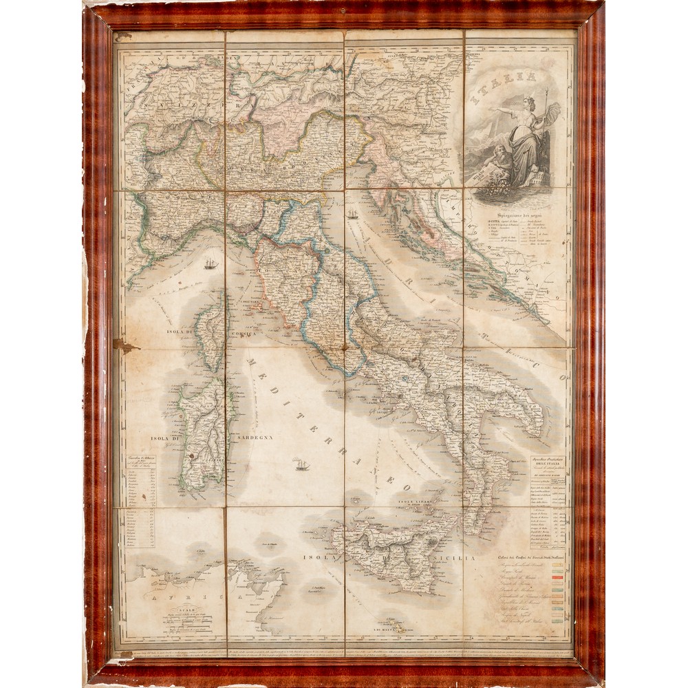 CARTINA geografica dell'Italia a colori realizzata da "Adriano Balbi".