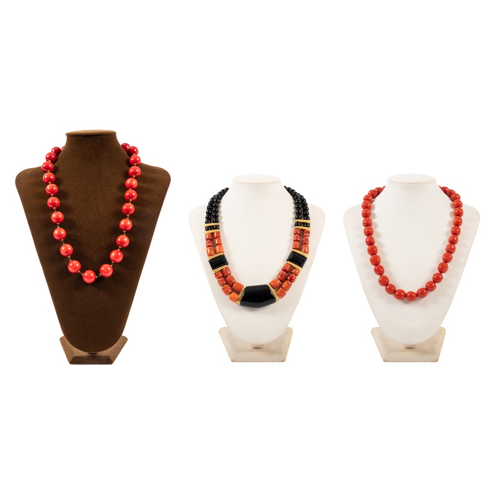 Collana con sfere irregolari color corallo.