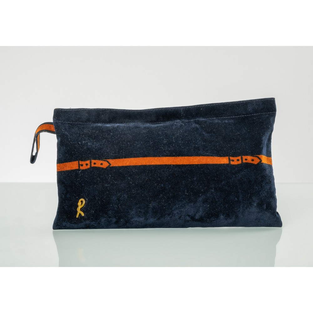 Borsa a mano in velluto nero e ruggine, cerniera sulla parte superiore e iniziale sul davanti in metallo dorato . Dimensioni: 29 × 17 cm. Marchio di produzione.