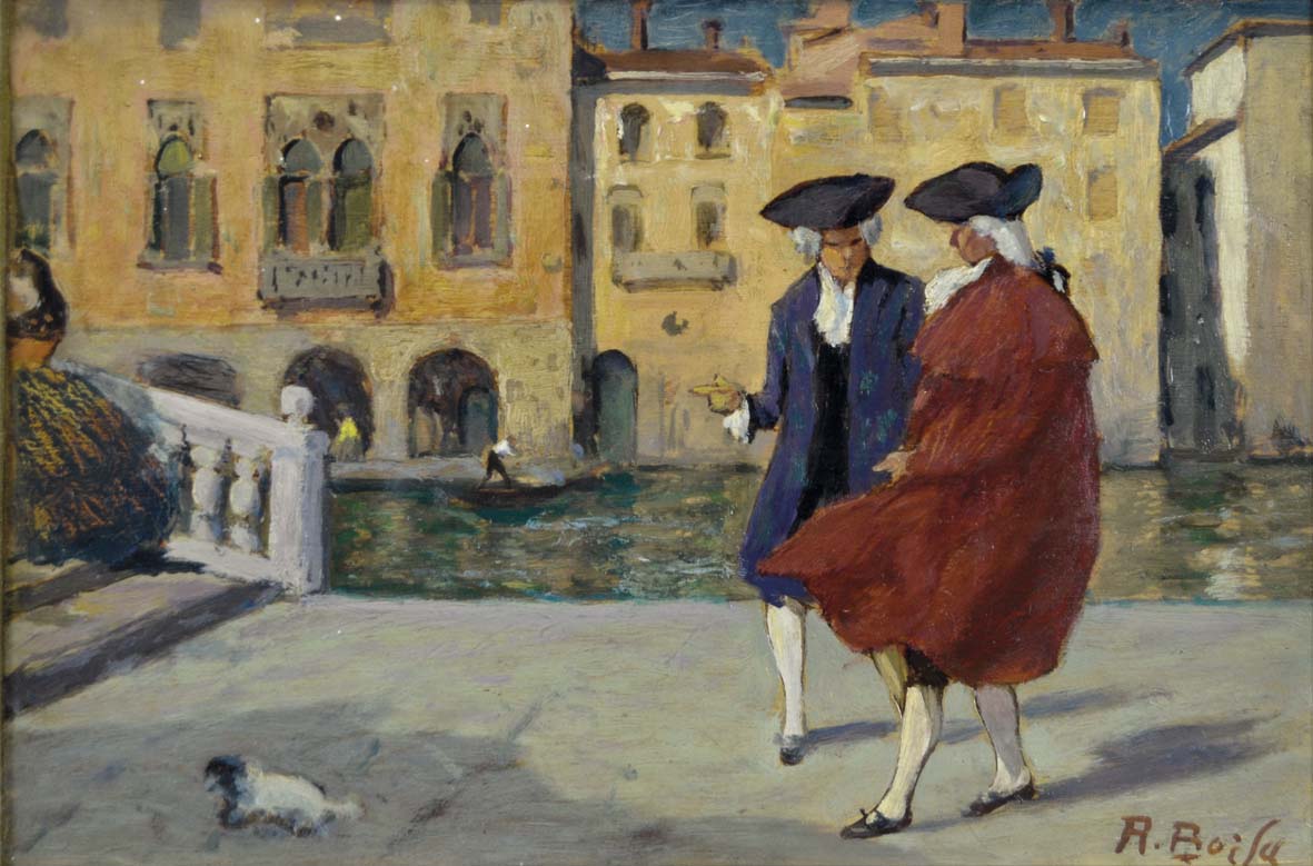 BORSA ROBERTO Milano 1880 - 1965 Scena settecentesca olio su tavola 17x27 firma in basso a destra