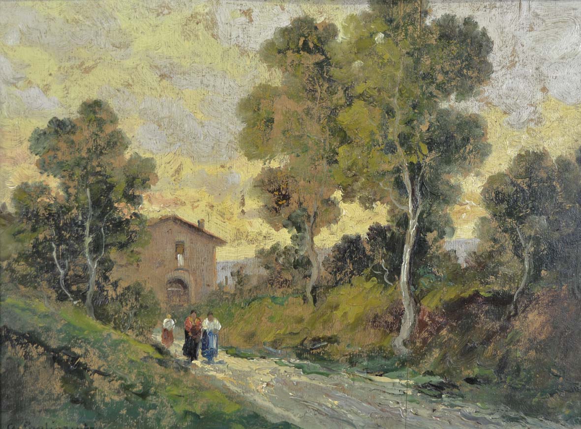 PAGLIARINI GIOVANNI Ferrara 1808 - 1873 Paesaggio olio su tavola 28x38 firma in basso a sinistra