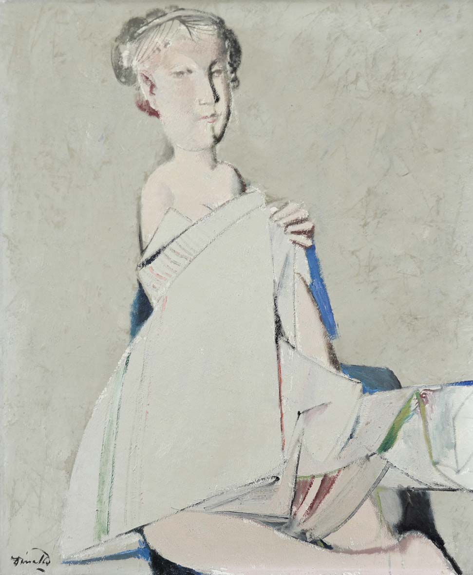 DINETTO LINO Este (Pd) 1927 Figura olio su tela 60x50 firma in basso a sinistra