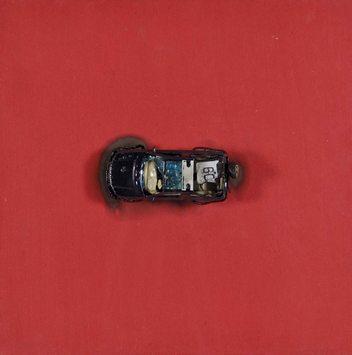 AUBERTIN BERNARD Fontenay-aux-roses 1934 Land Rover 2009 modellino di auto bruciato su tavola 30x30 firma e data al retro