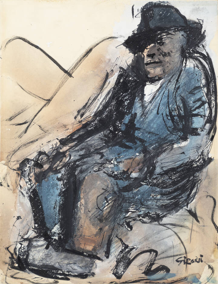 MARIO SIRONI<BR>Sassari 1885 - 1961 Milano<BR>"Uomo seduto" 1954 circa