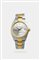 Cassa in acciaio con fondello a vite e lunetta in oro. Quadrante argento con indici geometrici applicati.