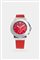 Cassa in acciaio con fondello avvitato. Quadrante rosso con indici geometrici applicati, contatore dei secondi continui al 6, dei 30 minuti cronografici al 9 e delle 12 ore al 3.