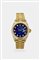 Cassa in oro giallo con lunetta decorata con diamanti incastonati. Quadrante blu degradé con indici in diamanti e datario al 3. Bracciale in oro giallo, integrato, con chiusura a scomparsa.