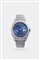 Cassa in acciaio con lunetta godronata in oro bianco. Quadrante blu con numeri romani applicati, datario al 3 ed indicazione dei secondi continui al centro.