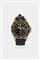 Cassa in oro con fondello a vite e lunetta girevole bidirezionale nera. Quadrante nero lucido con