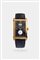 Cassa di forma in oro con fondello a vista. Quadrante nero (difetti) con indici geometrici applicati e grande data al 12.