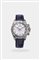 Cassa in oro bianco con fondello e pulsanti della cronografia a vite. Lunetta tachimetrica base 400. Quadrante MOP, indici geometrici applicati in diamanti. Ad ore 3 contatore dei minuti, al 6 quello delle ore ed alle 9 quello dei secondi continui. Bracciale in pelle con clasp in oro bianco.