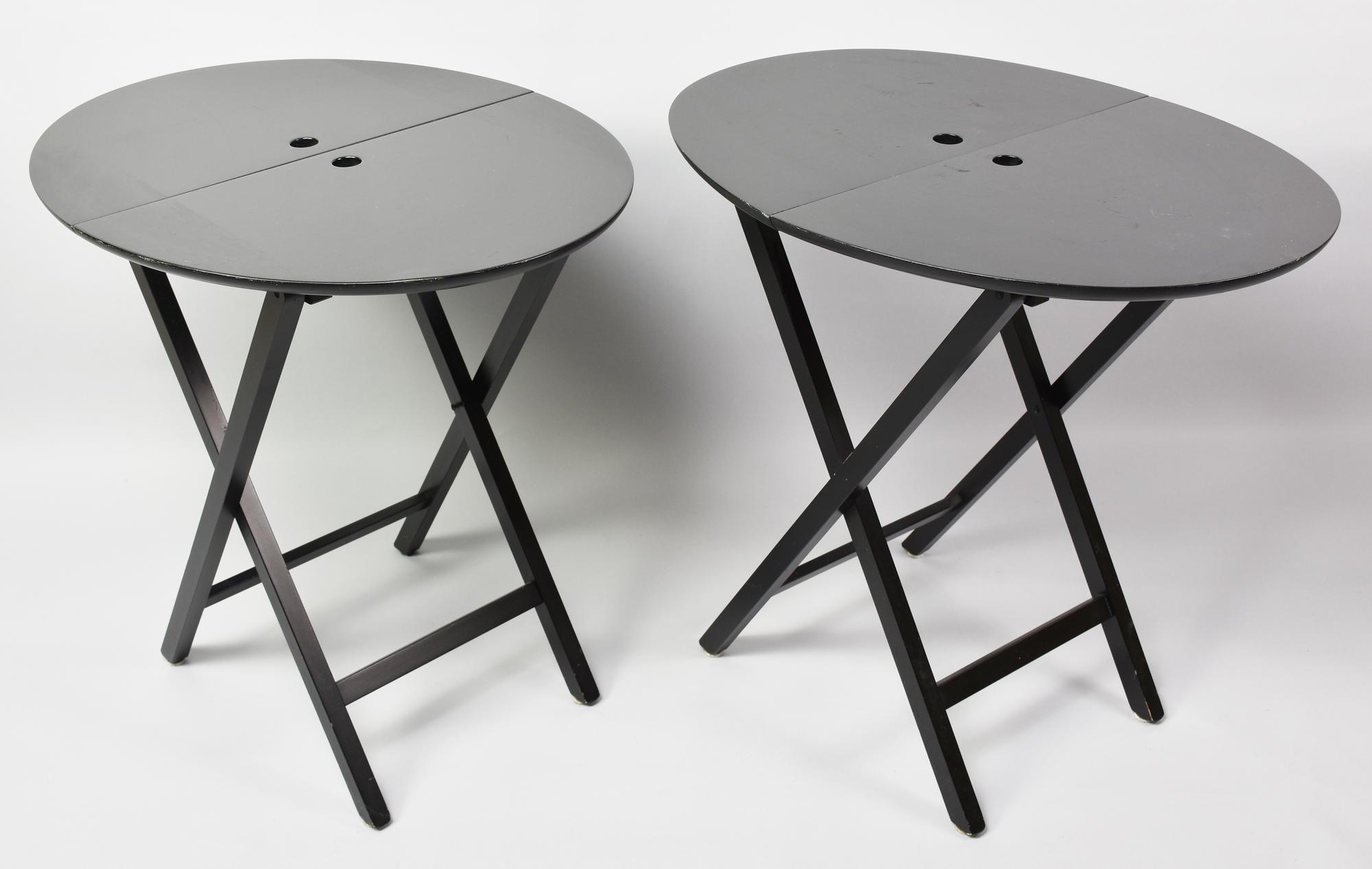 lotto composto da due tavolini in legno laccato nero, richiudibili