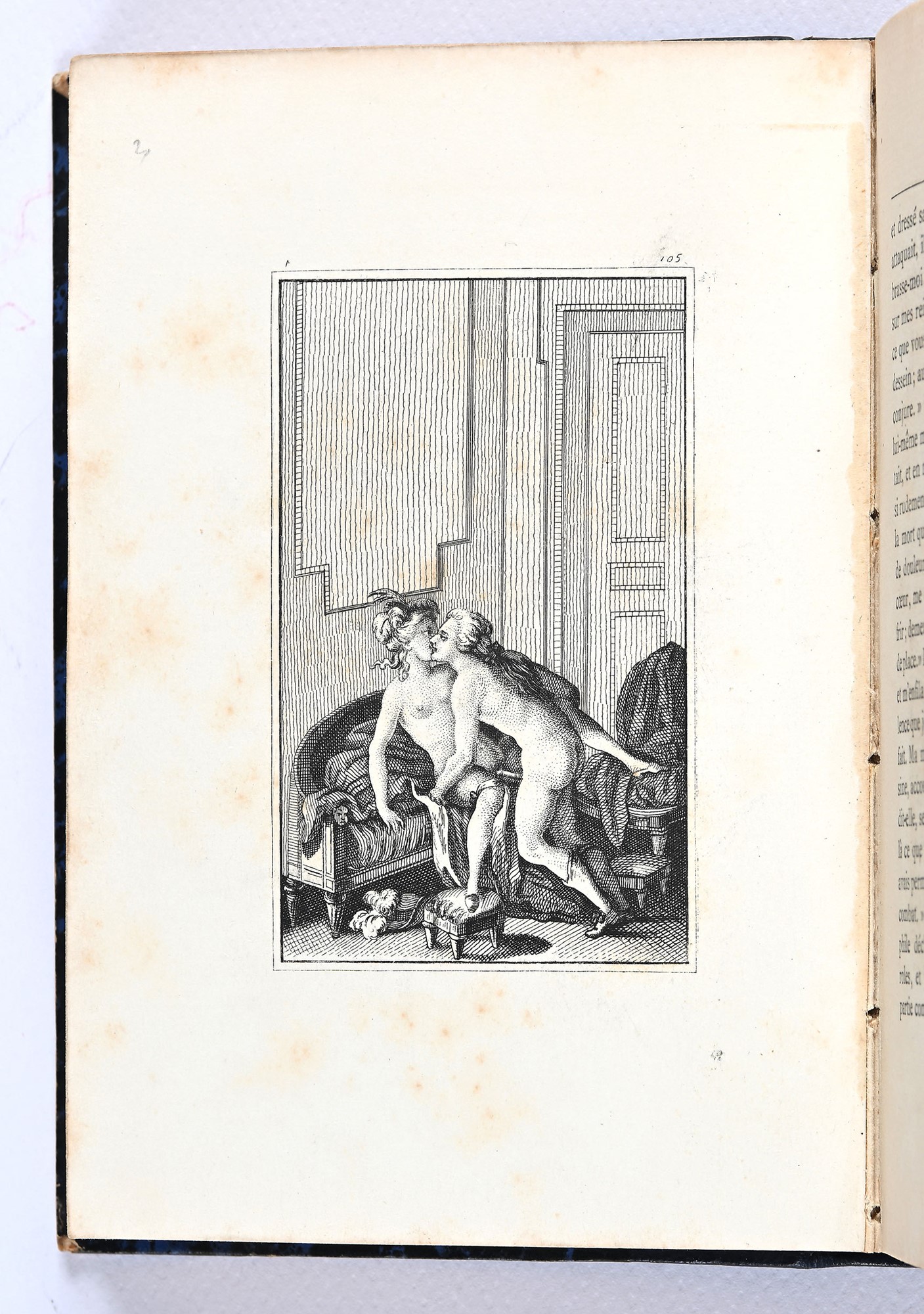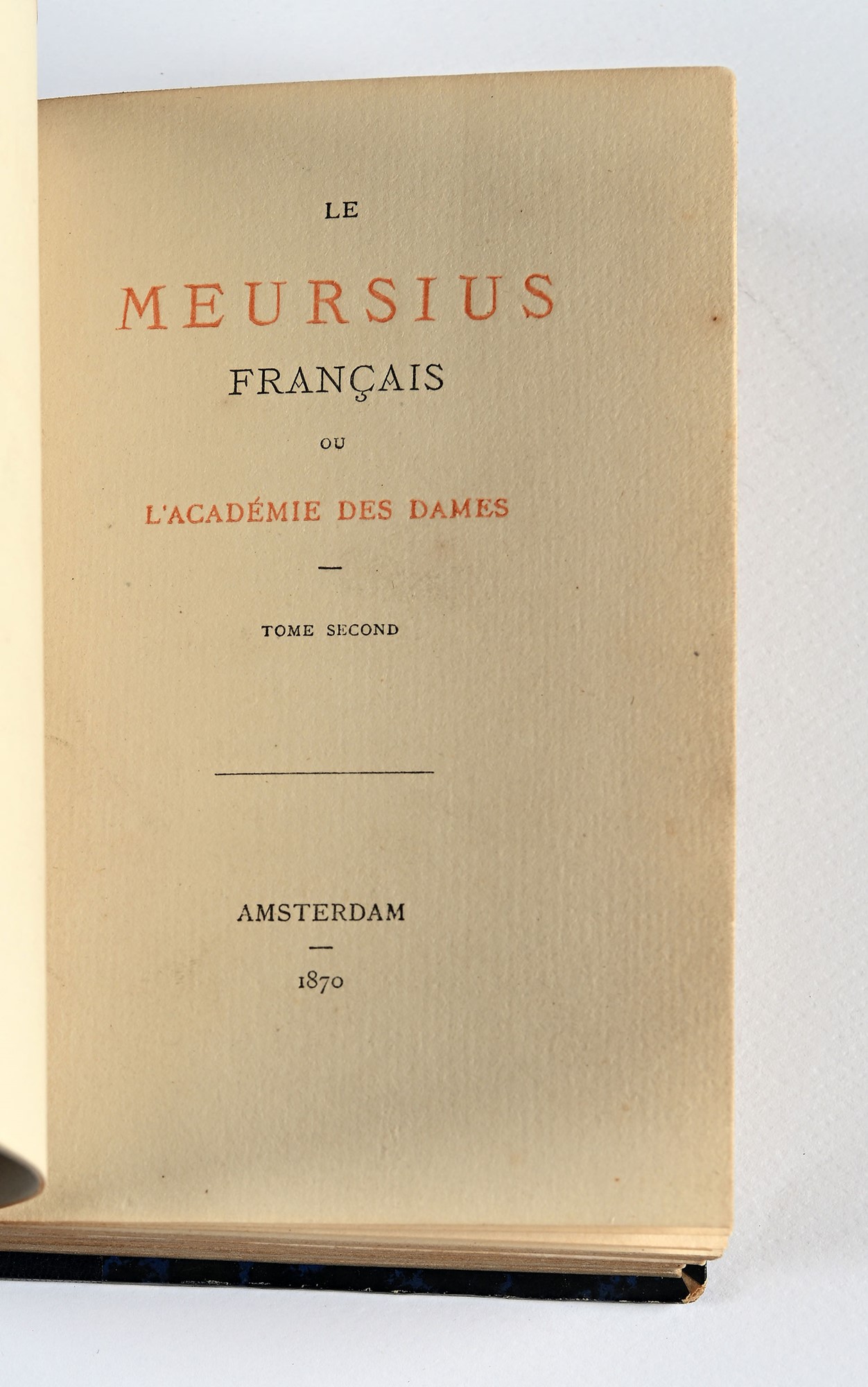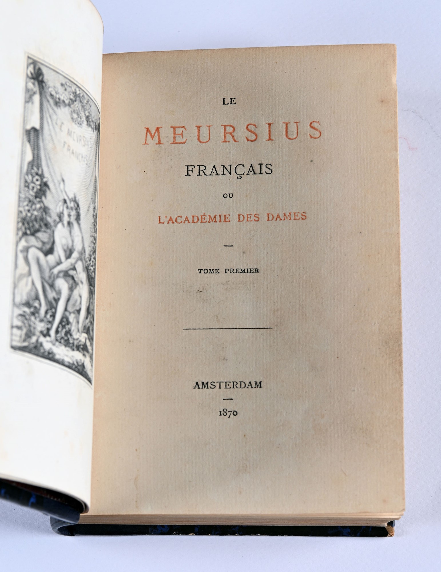 [Chorier, Nicolas] - LE MEURSIUS FRANÇAIS OU L'ACADÉMIE DES DAMES I-II 2 voll. Leg. coeva, pp. [4]-197+[4]-198-[2] e 7+6 tavv. ill., mm 158x110. Rarità francese, edizione ottocentesca del dialogo saffico apocrifo di Nicolas Chorier (1612- 1692) ornata con 13 incisioni erotiche fuori testo. Legature coeve in mezza pelle con titoli e fregi floreali in oro al dorso. Testo a stampa 1870, Amsterdam, s.n. mm 158x110