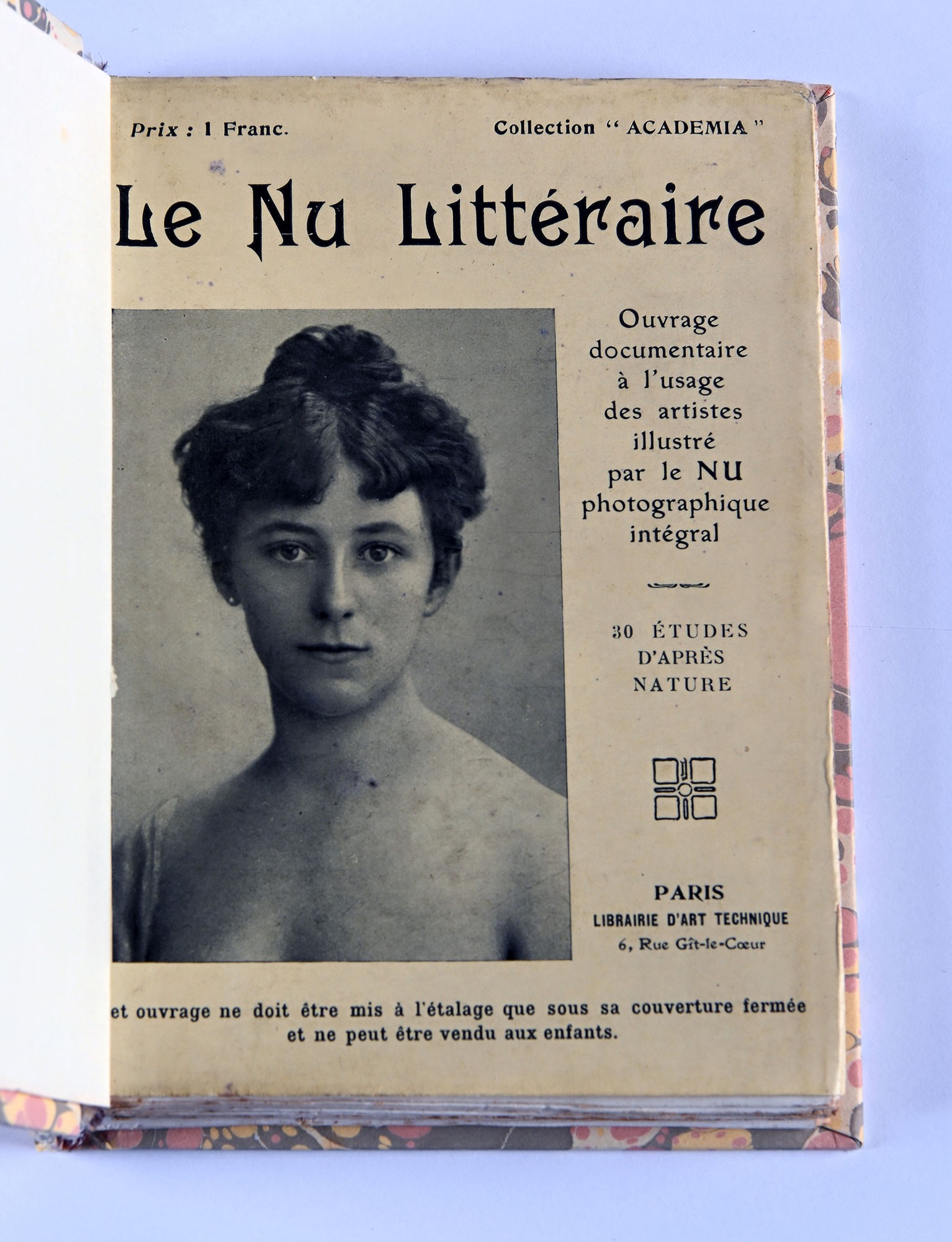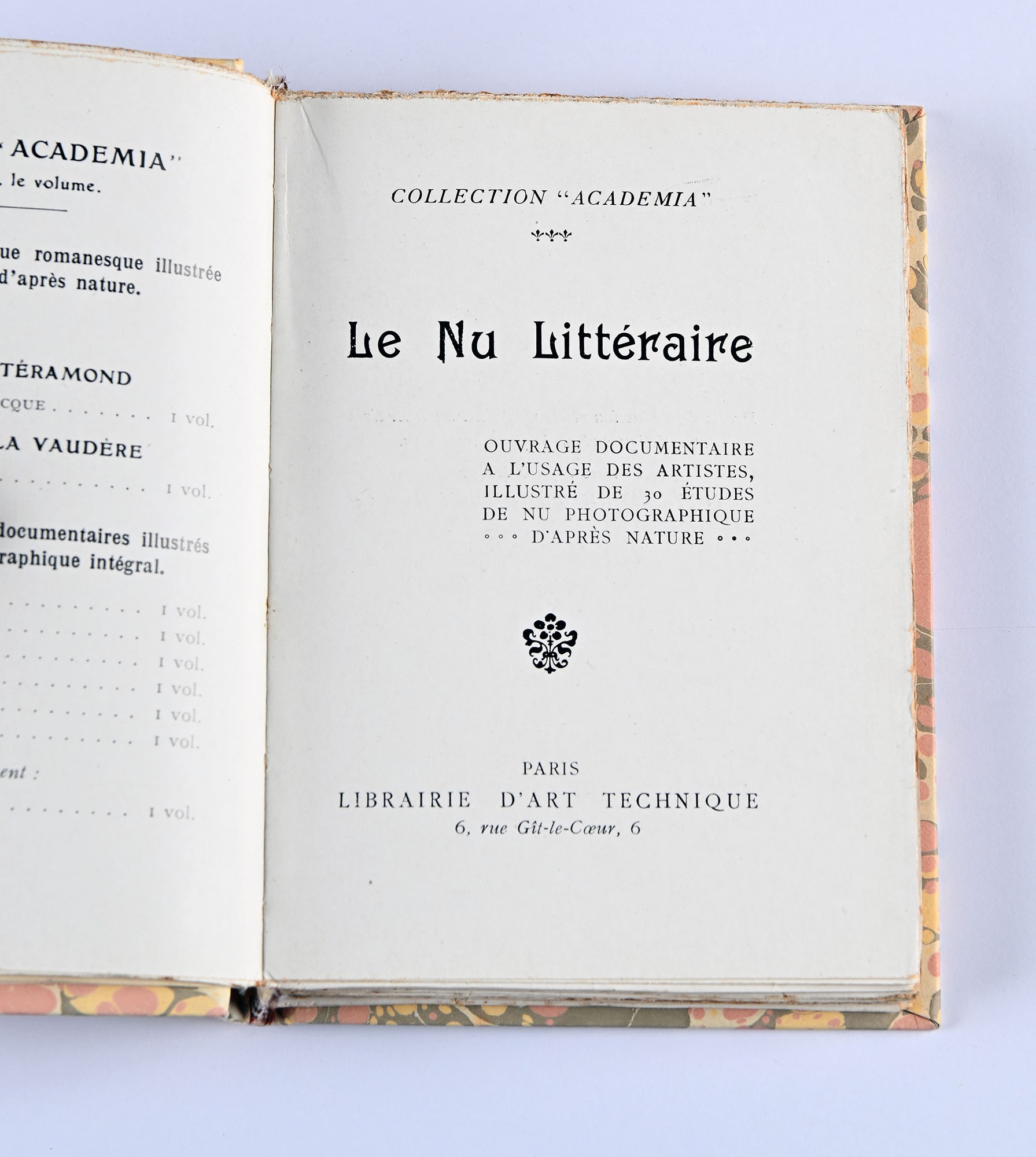 LE NU LITTERAIRE 1 vol. Ril. post. pp. 123 + tavv. ill., mm 158x115. Collection academica. Volume illustrato. Rilegatura in cartonato marmorizzato, con la brossura conservata. Testo a stampa s.d., Paris, Libr. d’art technique mm 158x115