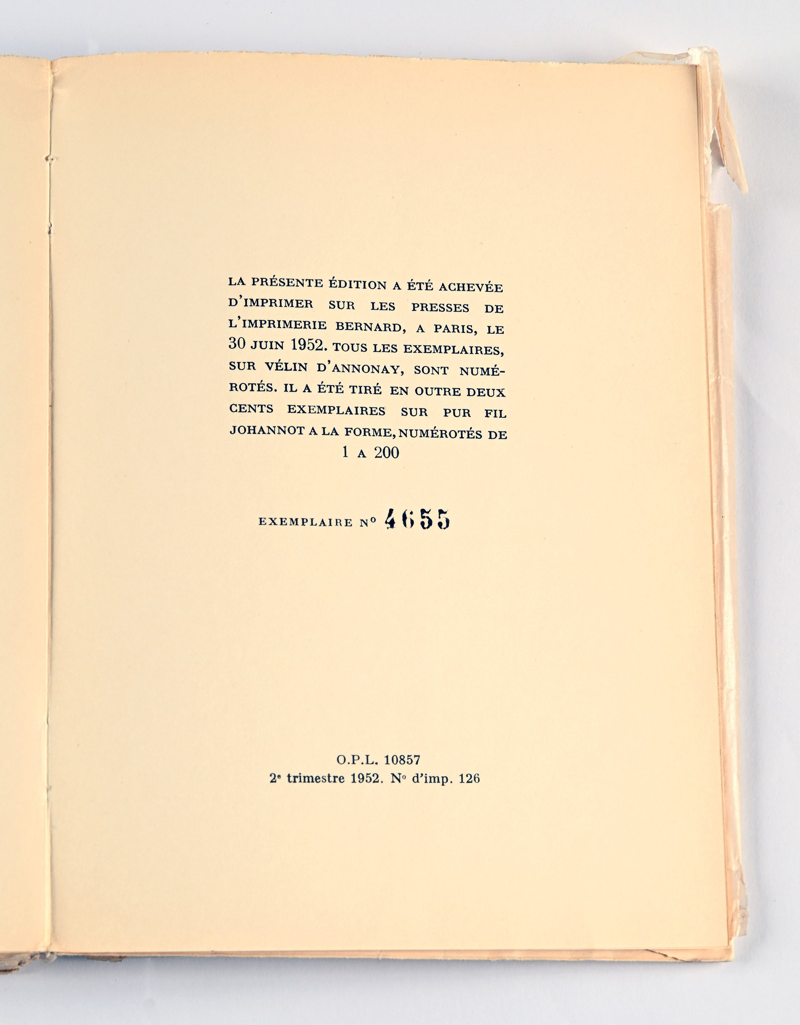 COLETTE - L’INGÉNUE LIBERTINE 1 vol. Bross. ed. con sovracoperta in velina. mm 194x145, pp. 276 + tavv. ill. Edizione numerata, es. n. 4655. Volume illustrato, con testo a col. ed eleganti tavole ill. Testo a stampa 1952, Paris, Editions du Panthéon mm 194x145