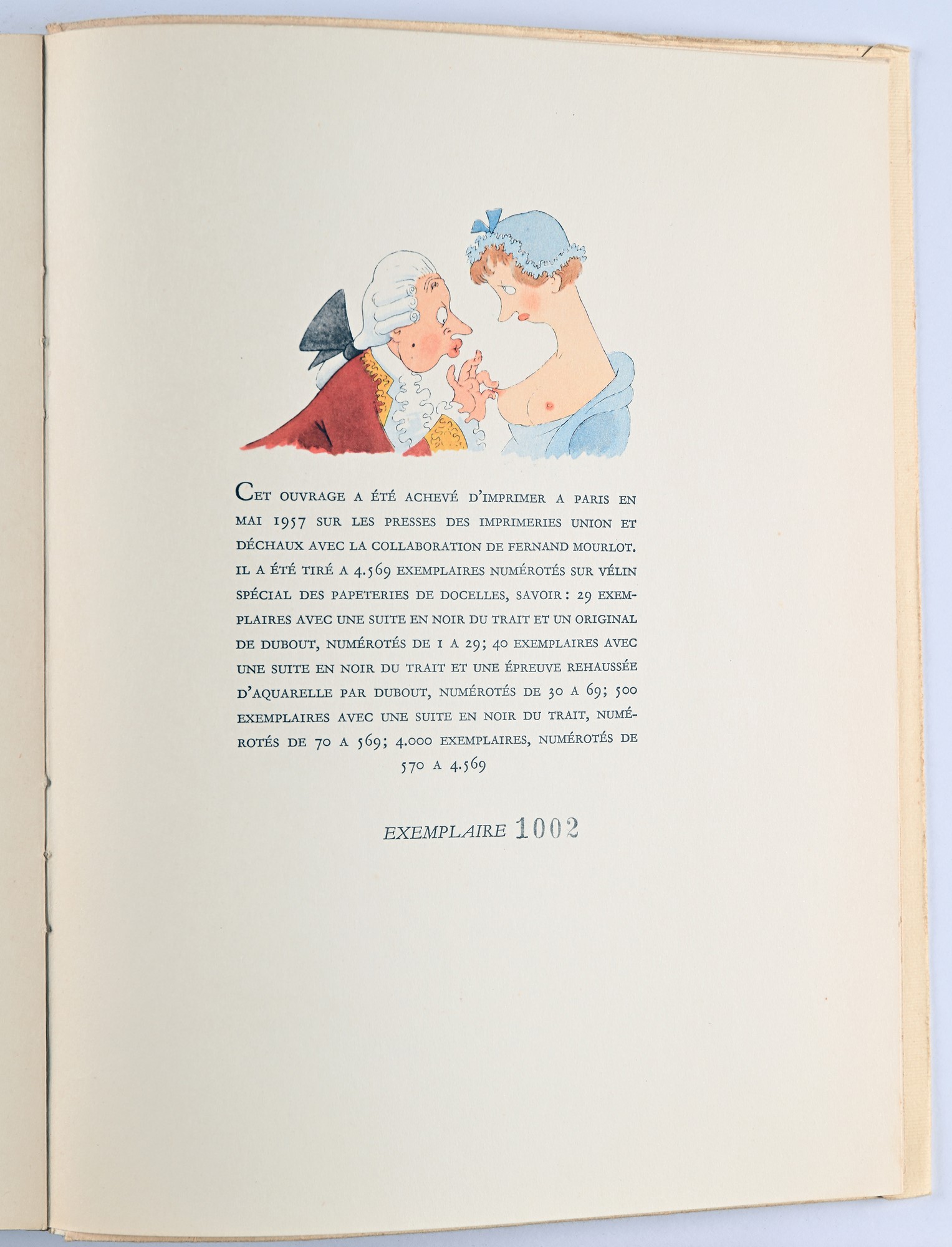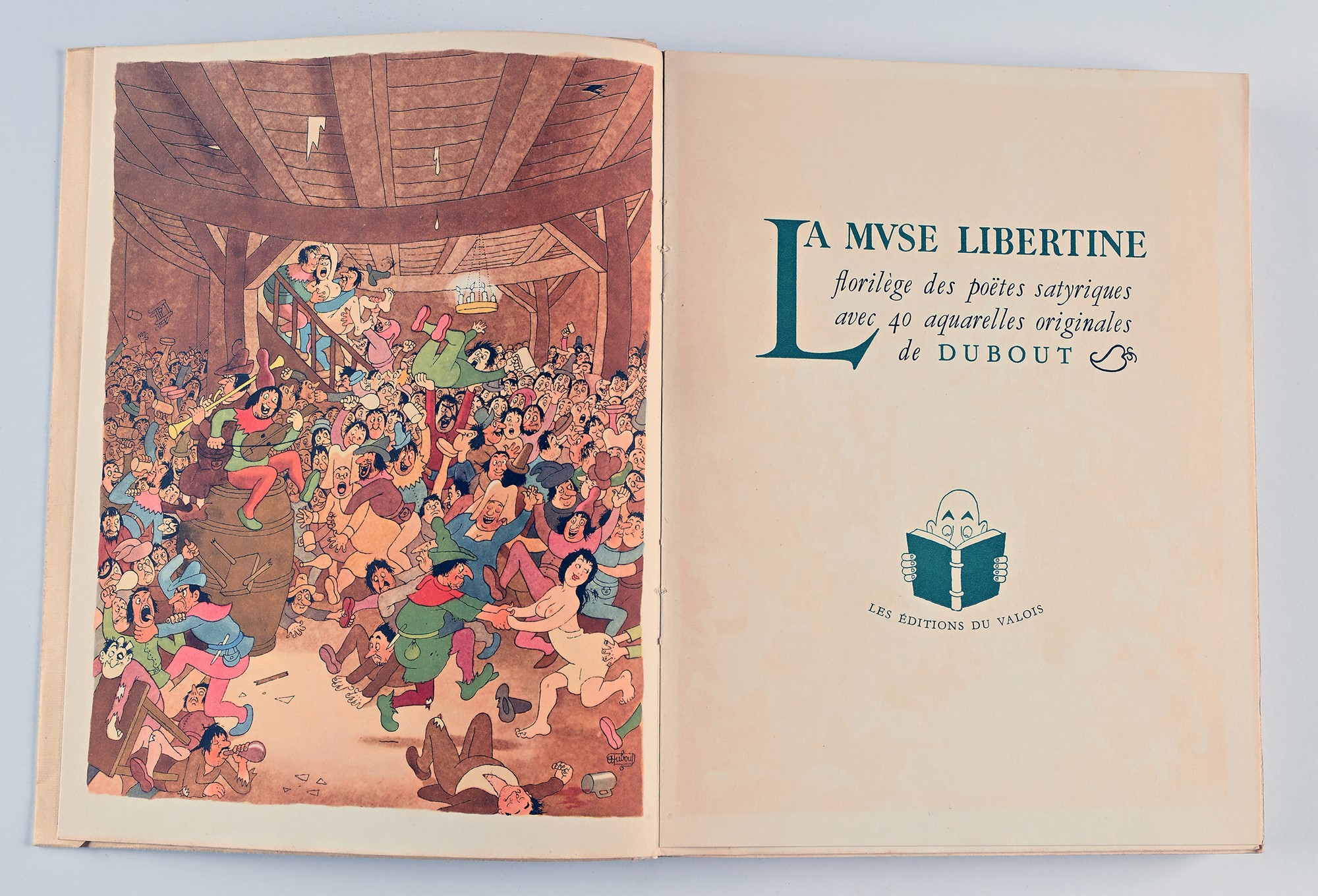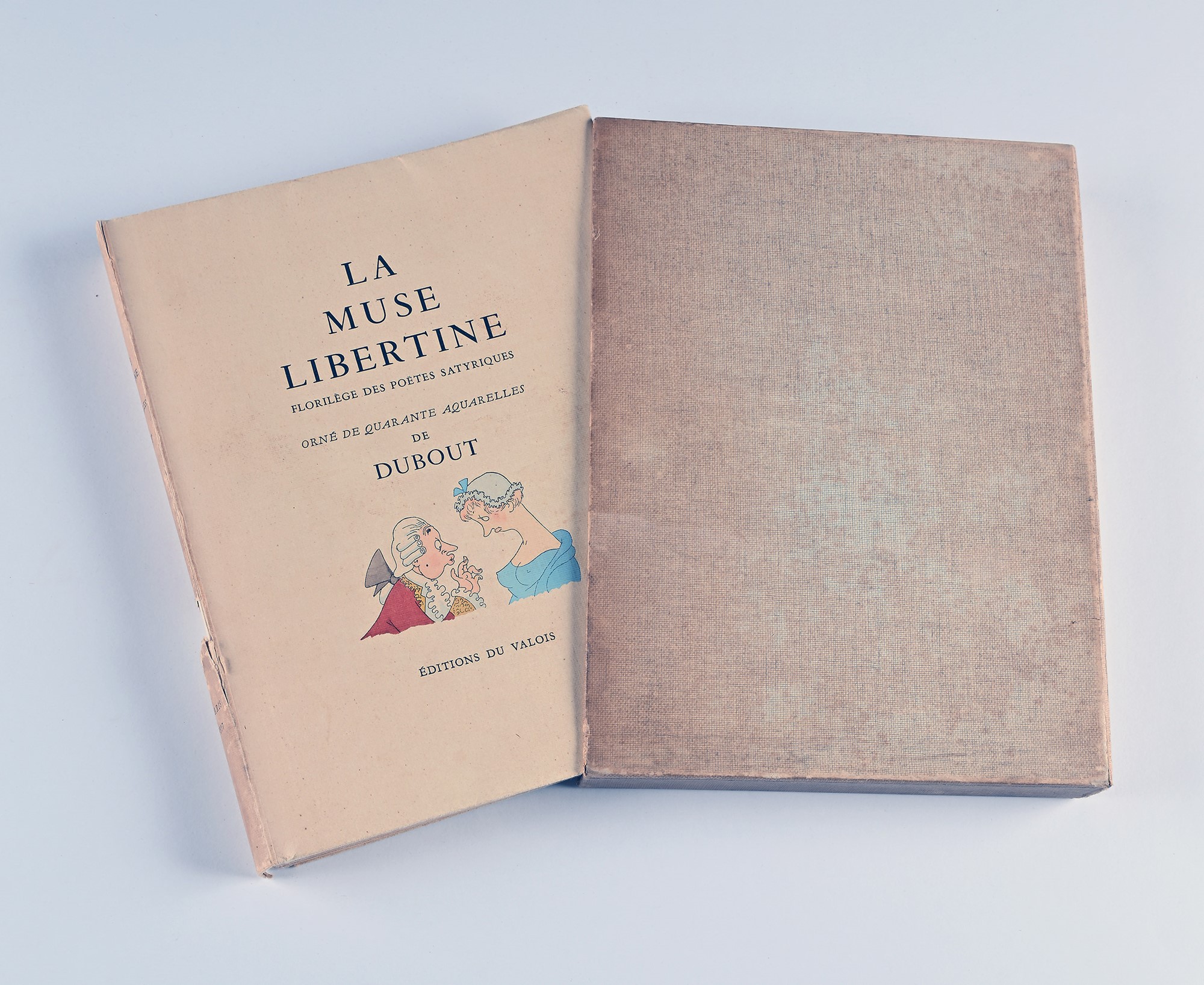 AA.VV - LA MUSE LIBERTINE. FLORILÈGE DES POËTES SATYRIQUES 1 vol. Bross. ed. con sovracopertina. pp. 225, mm 265x205. Volume illustrato. Edizione francese numerata, es. n. 1002 di 4569, ornata con 40 acquerelli di Dubout. Con custodia editoriale in cartoncino rigido. È presente una piccola mancanza al dorso. Testo a stampa 1957, Paris, Les éditions du Valois mm 265x205