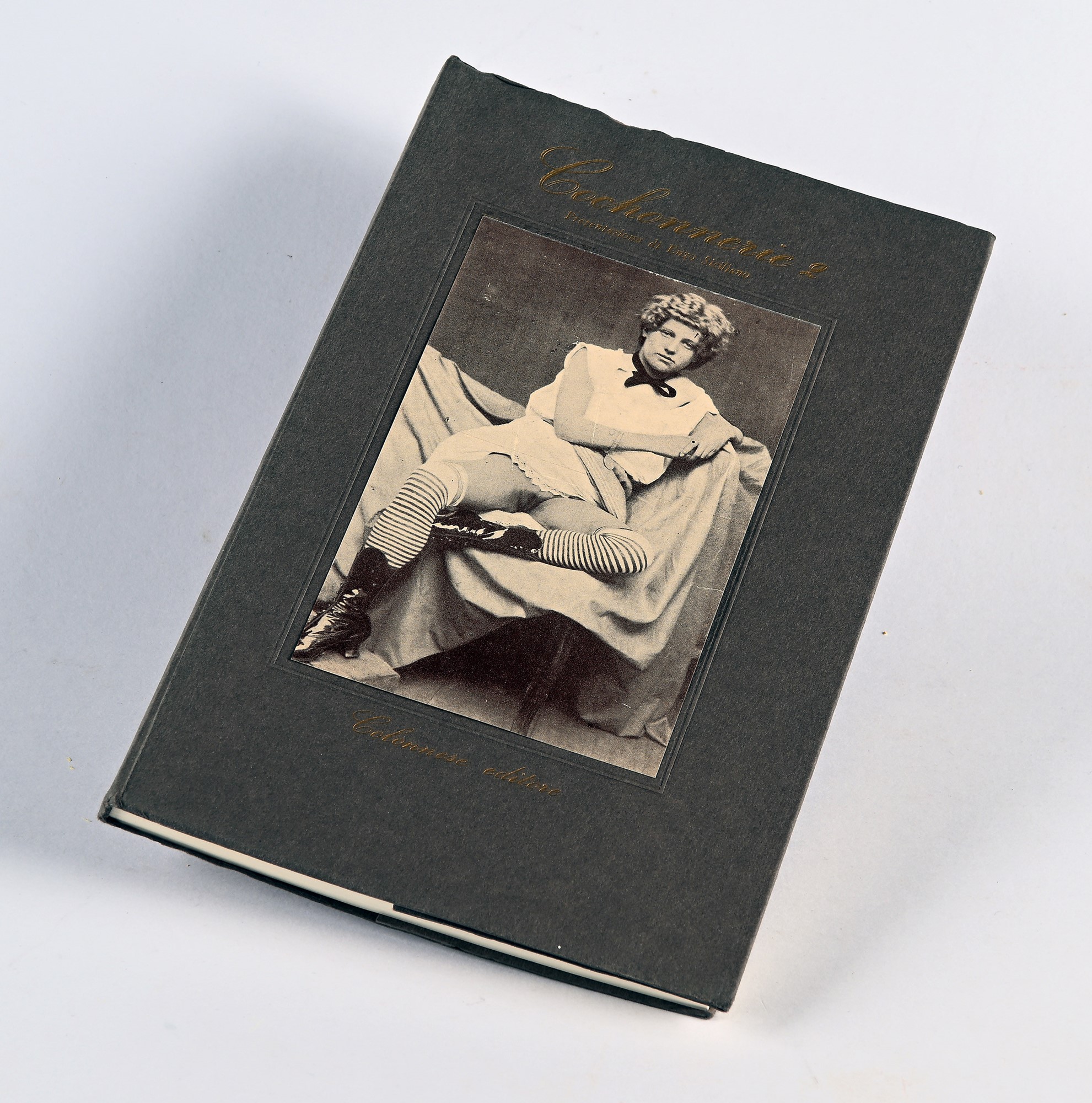COCHONNERIE 2. IMMAGINI PORNOGRAFICHE DELL’800-900 1 vol. Bross. ed. con alette, pergamino. pp. (18)-(12)-(20) + [45] tavv. ill., mm 235x150. Edizione di 1000 copie numerate a mano, es. n. 876. Volume illustrato, presentazione di Enzo Siciliano, testo e tavole stampate entro cornice. Esemplare con ex-libris erotico di Costantini. Testo a stampa 1982, Napoli, Colonnese mm 235x150