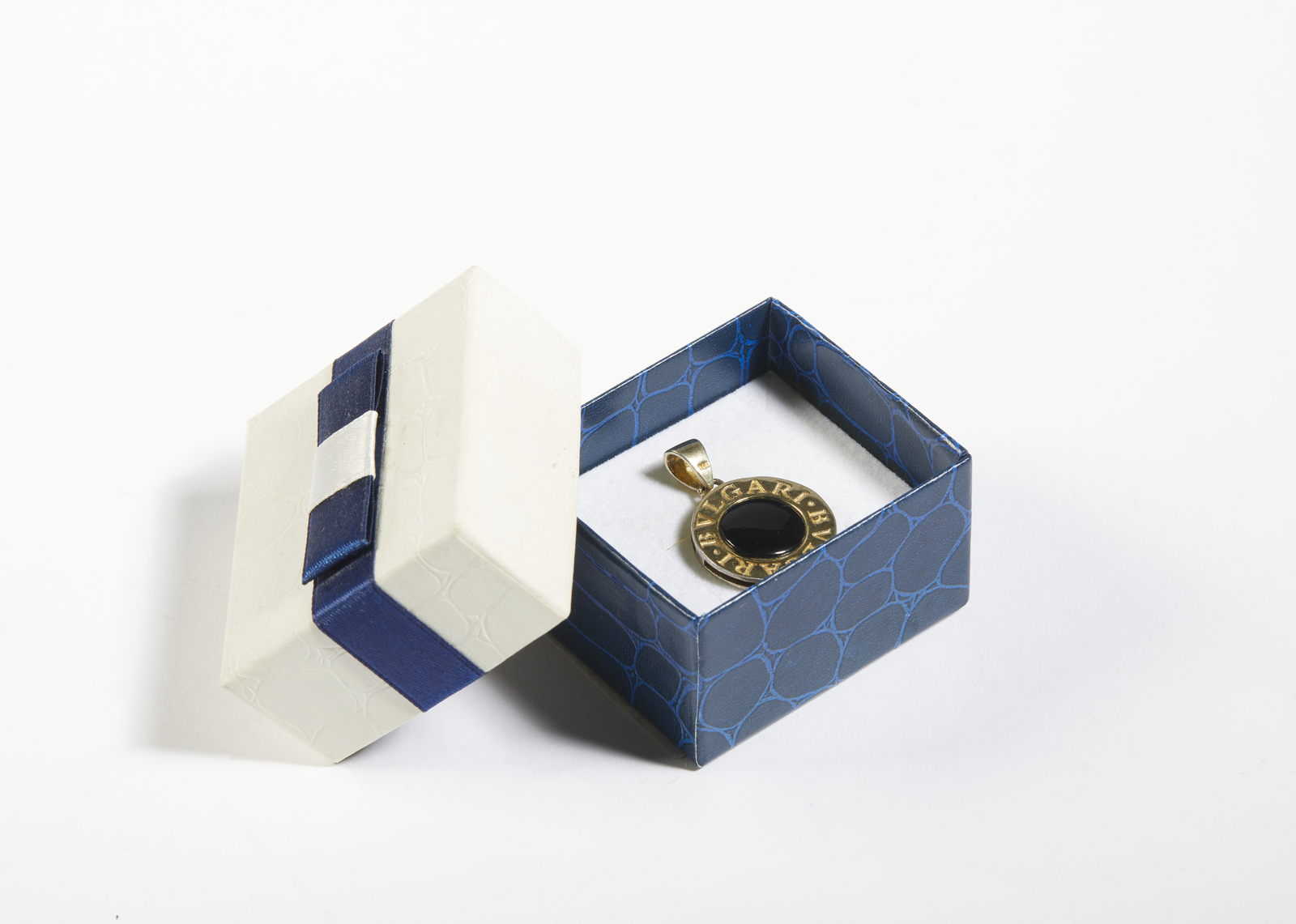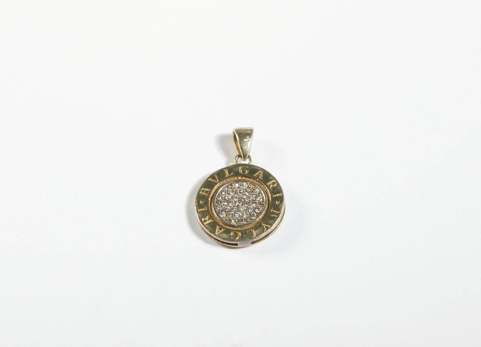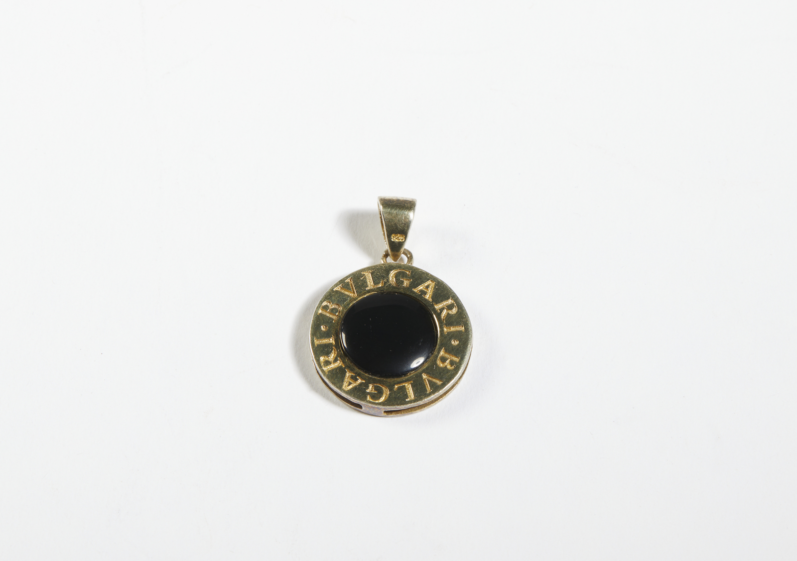 BULGARI - Pendente in argento 925 placcato oro con brillantini ed onice.