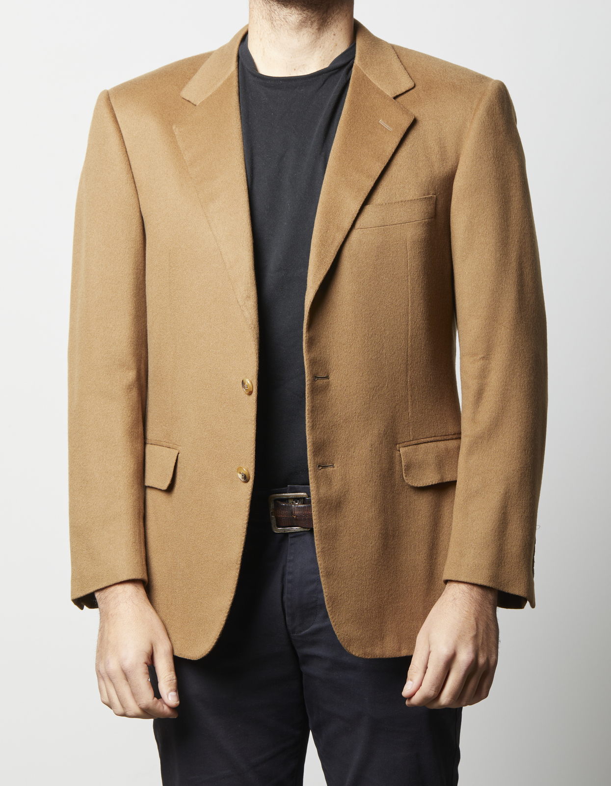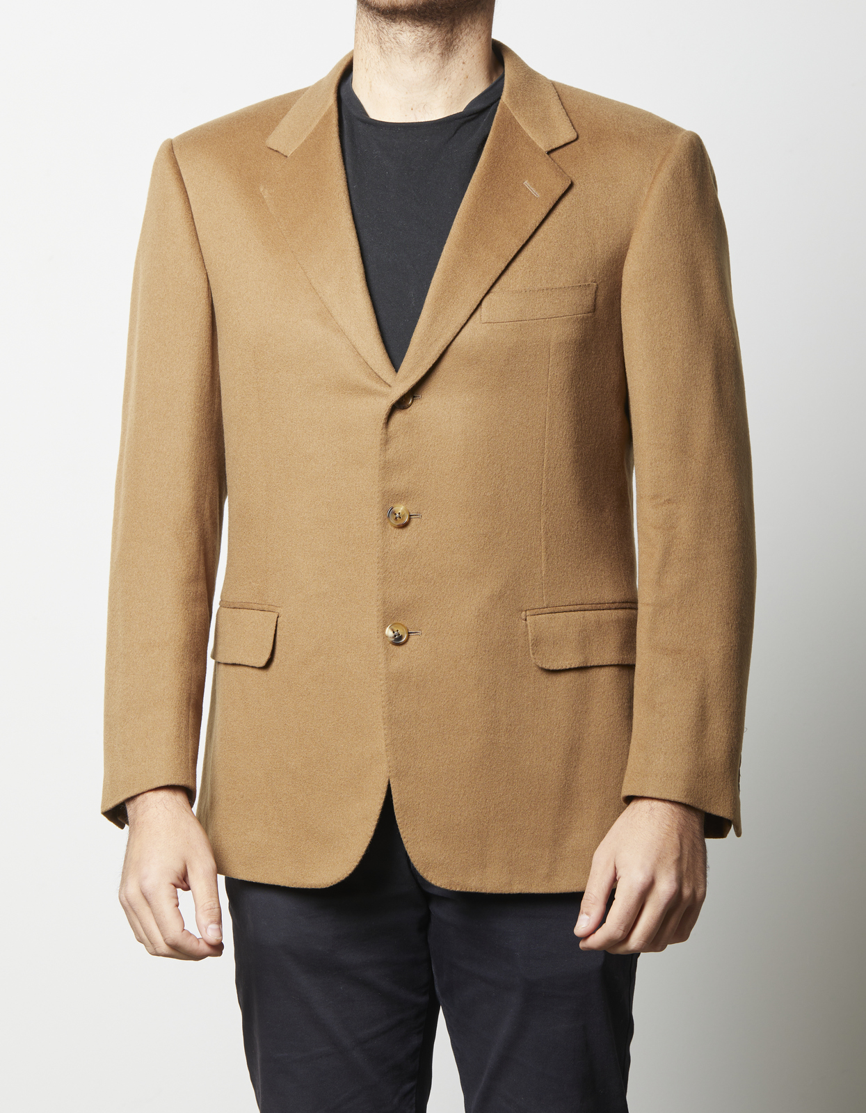 HERMES Giacca. cashmere. . Classica giacca Hermès vintage, tre bottoni, in pregiato cachemire colo cammello, interno foderato in nuance, etichetta all'intermo, capo classico ed intramontabile, un vero e proprio wardrobe essential. Il modello è alto 190cm e indossa abitualmente una taglia 52IT
