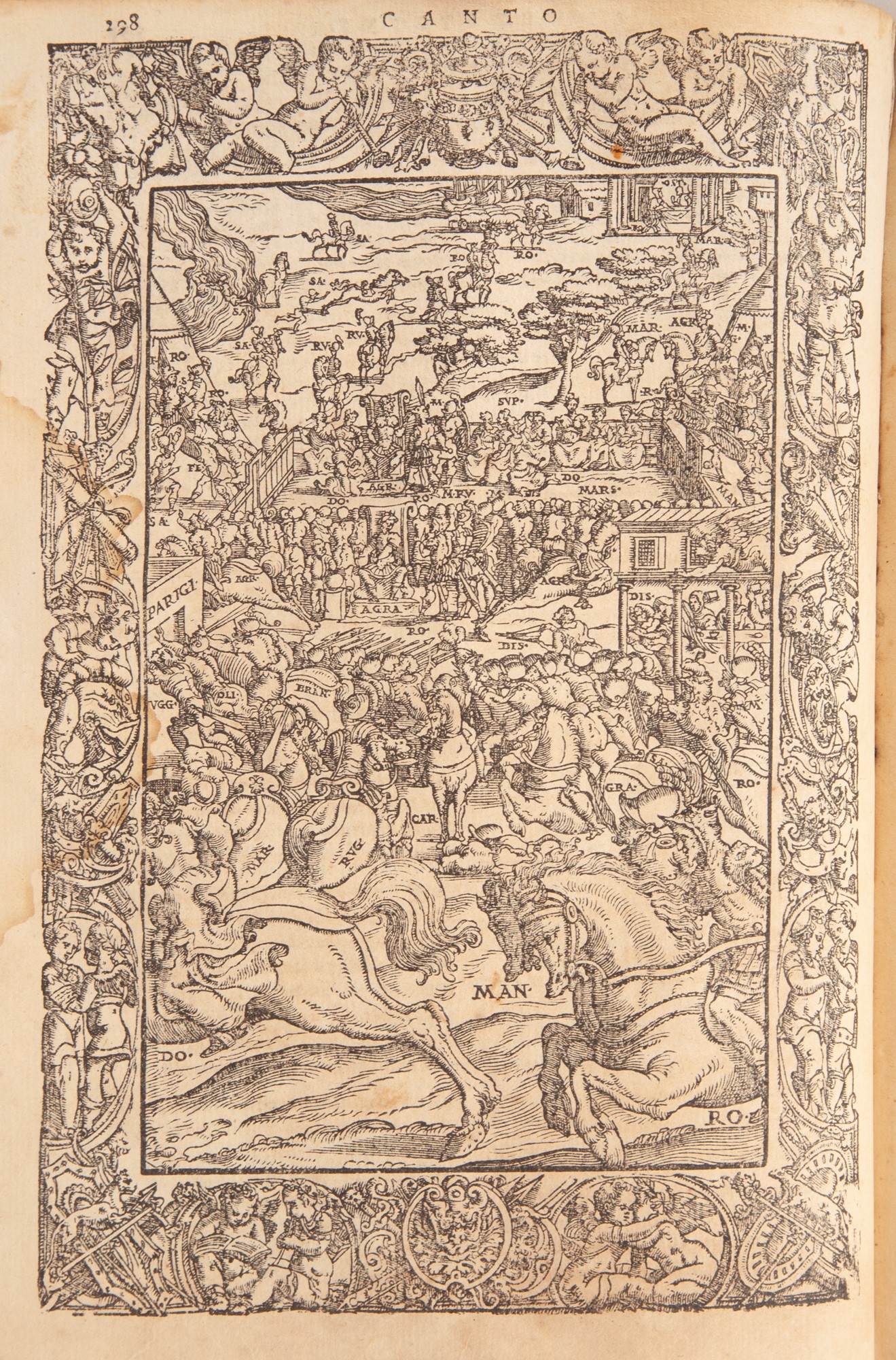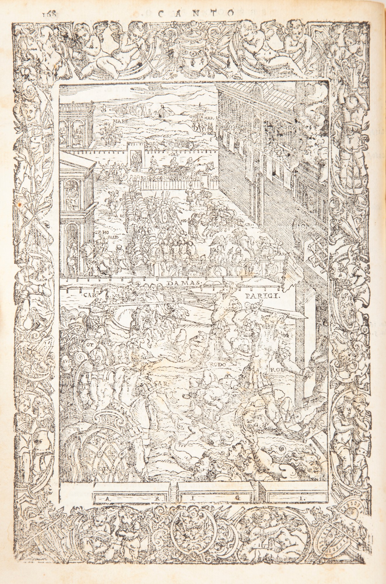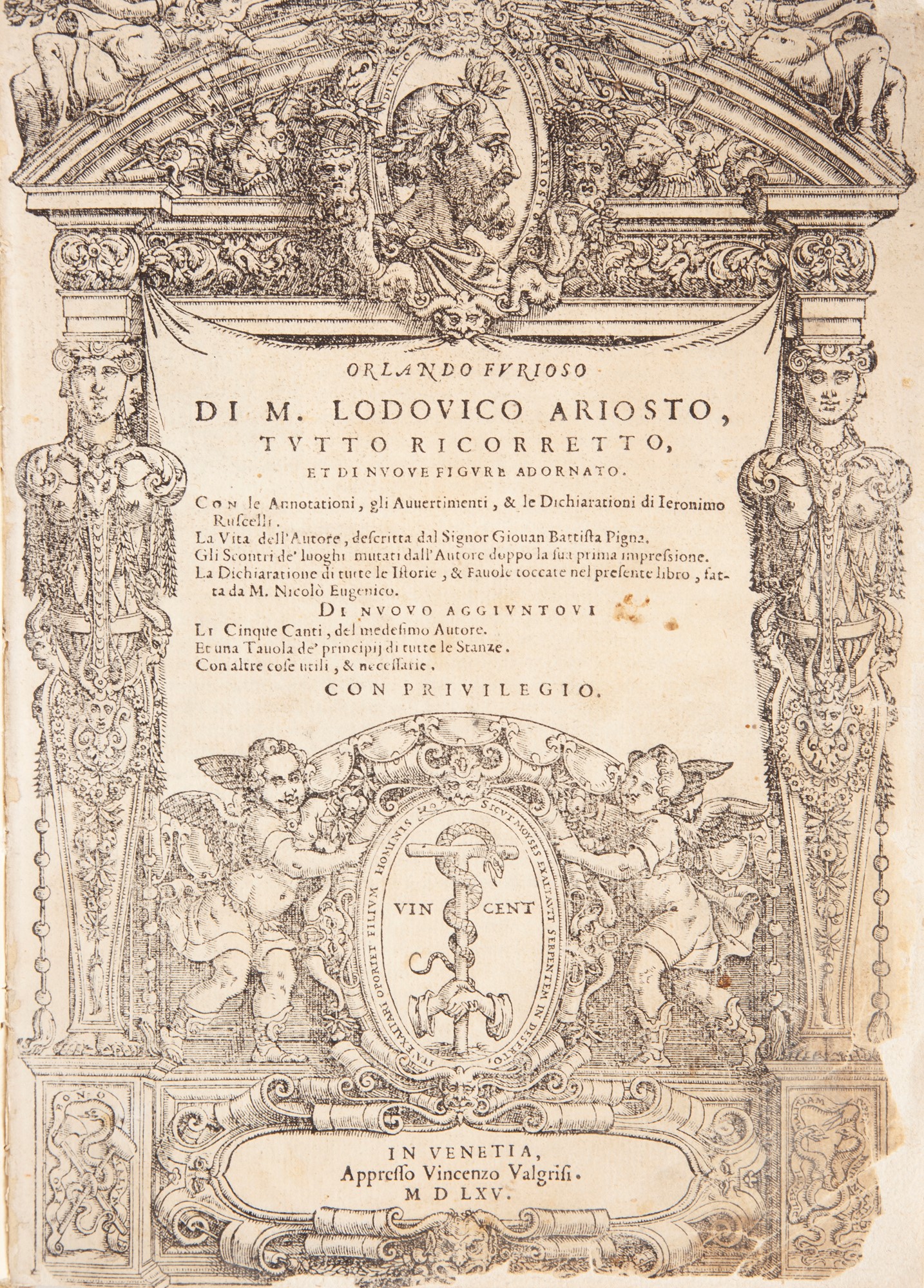 Orlando Furioso di M. Lodovico Ariosto, Tutto ricorretto, et di nuove figure adornato. Con le Annotationi, gli Argomenti, & le Dichiarationi di Ieronimo Ruscelli.