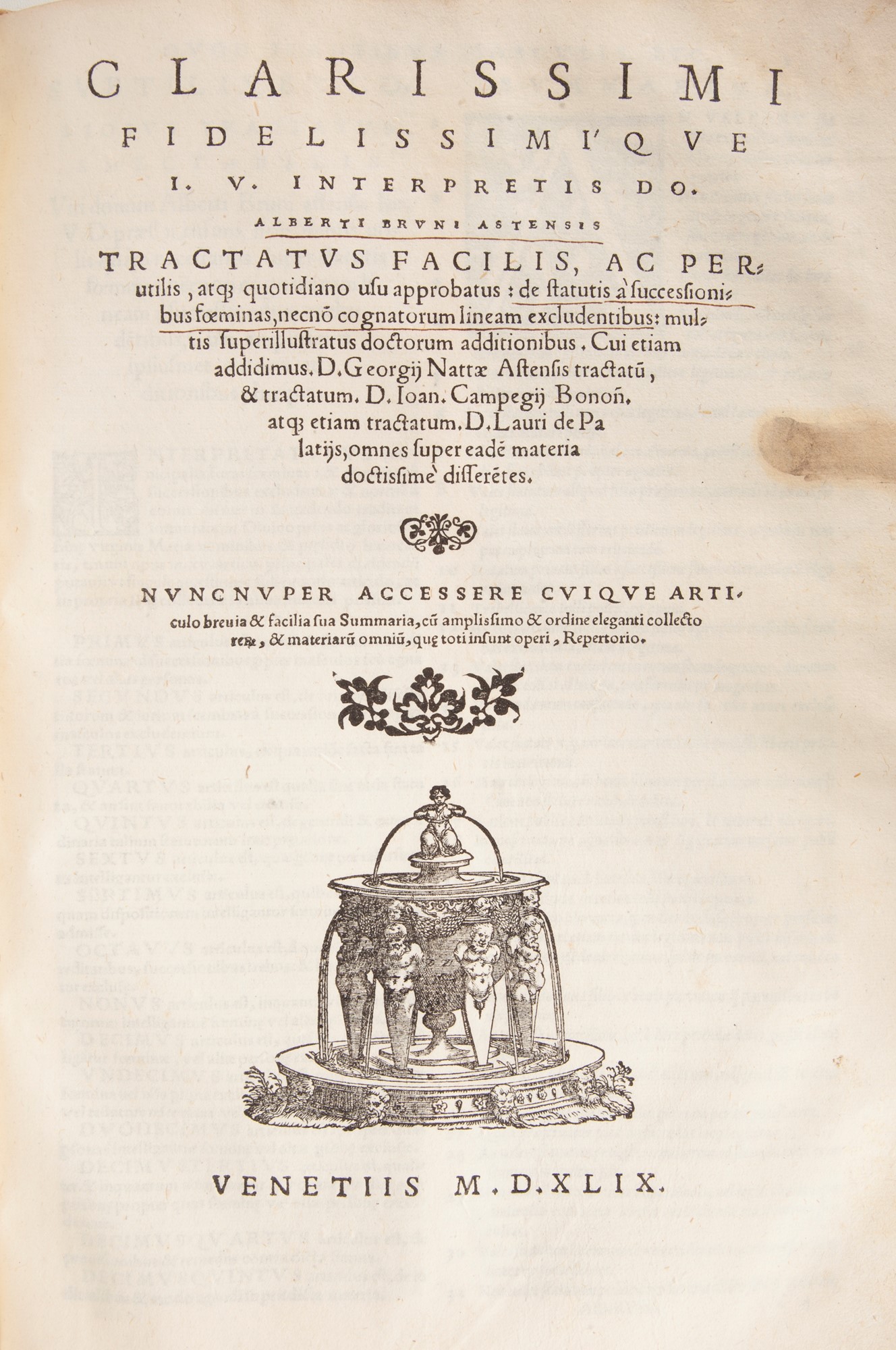 Lot 205 | Alberto Bruno - Feudalia consilia ac responsa D. Alberti Bruni Astensis; cum nonnullis consiliis aliorum solemnium doctorum antiquorum & modernorum incidenter insertis