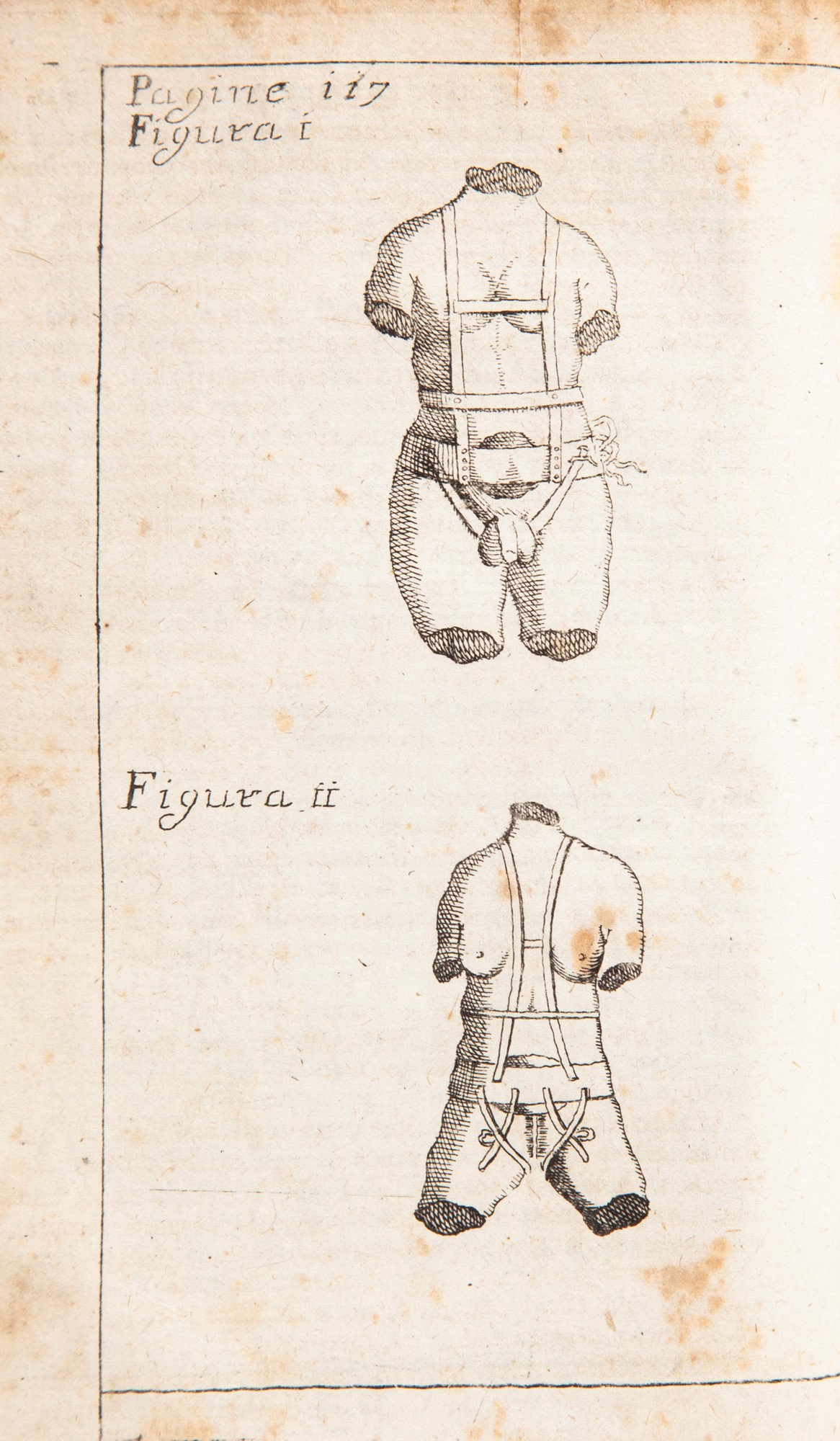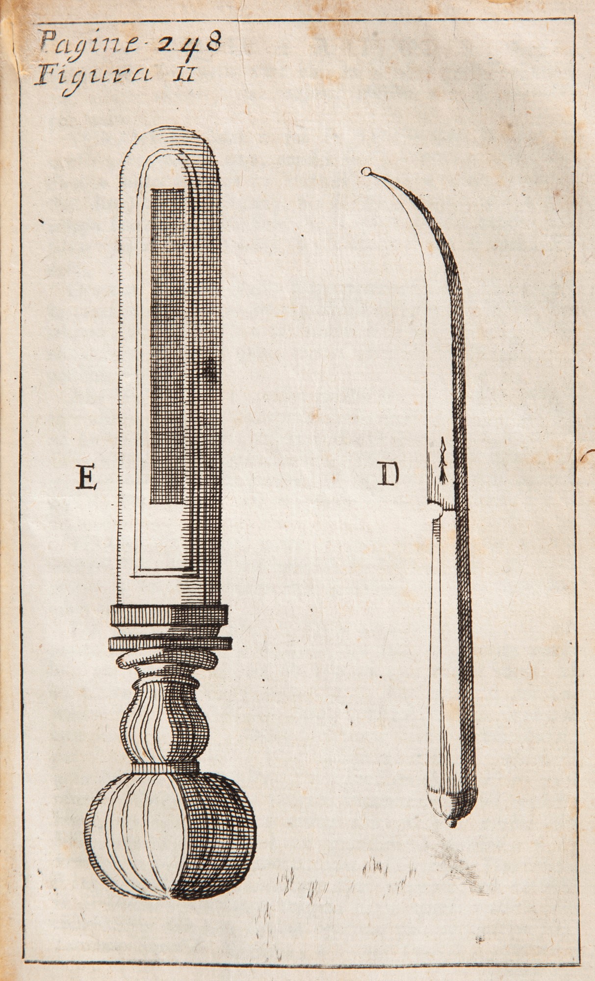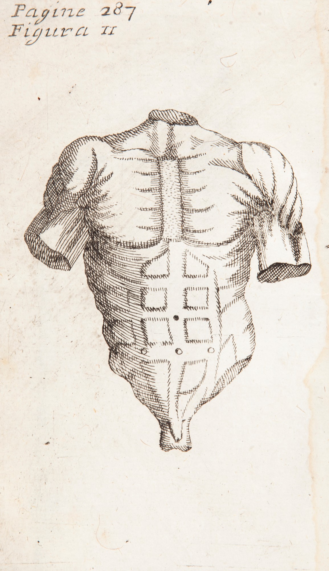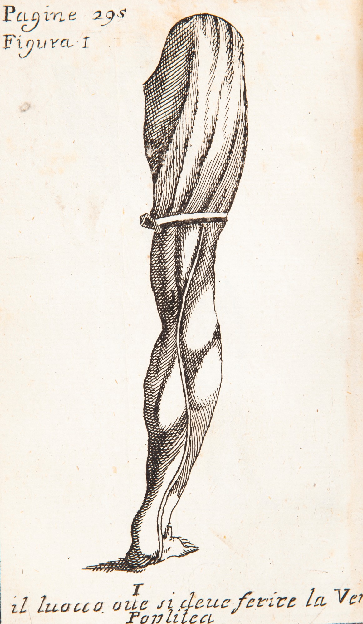 Filippo Masiero - La chirurgia compendiata, ovvero Istruzioni per il chirurgo in pratica Sesta edizione In 8°. Edizione sesta di quest'opera del medico padovano primo Chirurgo del Pio Ospitale di San Francesco Grande di Padova. Presenti numerose illustrazioni xilografiche a piena pagina che raffigurano parti anatomiche e strumenti chirurgici, tecniche pratiche per mettere dei punti di sutura, curare amputazioni, ernie, fratture. La chirurgia nasce come lavoro manuale, esercitata dal medico ippocratico e poi, a partire dal Medioevo, dal barbiere in bottega o dal cerusico sui campi di battaglia. Appresa non attraverso i libri ma per imitazione e ripetizione dei gesti, la chirurgia è via via cresciuta da quando l'esercitazione anatomica ha creato le premesse scientifiche per una operazione efficace sul corpo dei vivi. A partire dal Sei e nel Settecento numerose opere di divulgazione, tra cui questa, hanno consentito di istruire i chirurghi alla pratica della professione. Legatura in piena pergamena coeva con titolo manoscritto al dorso. Gore d'acqua e bruniture che ledono solo marginalmente il testo. Francesco Zane, Venezia 1749 cm 18x11,3