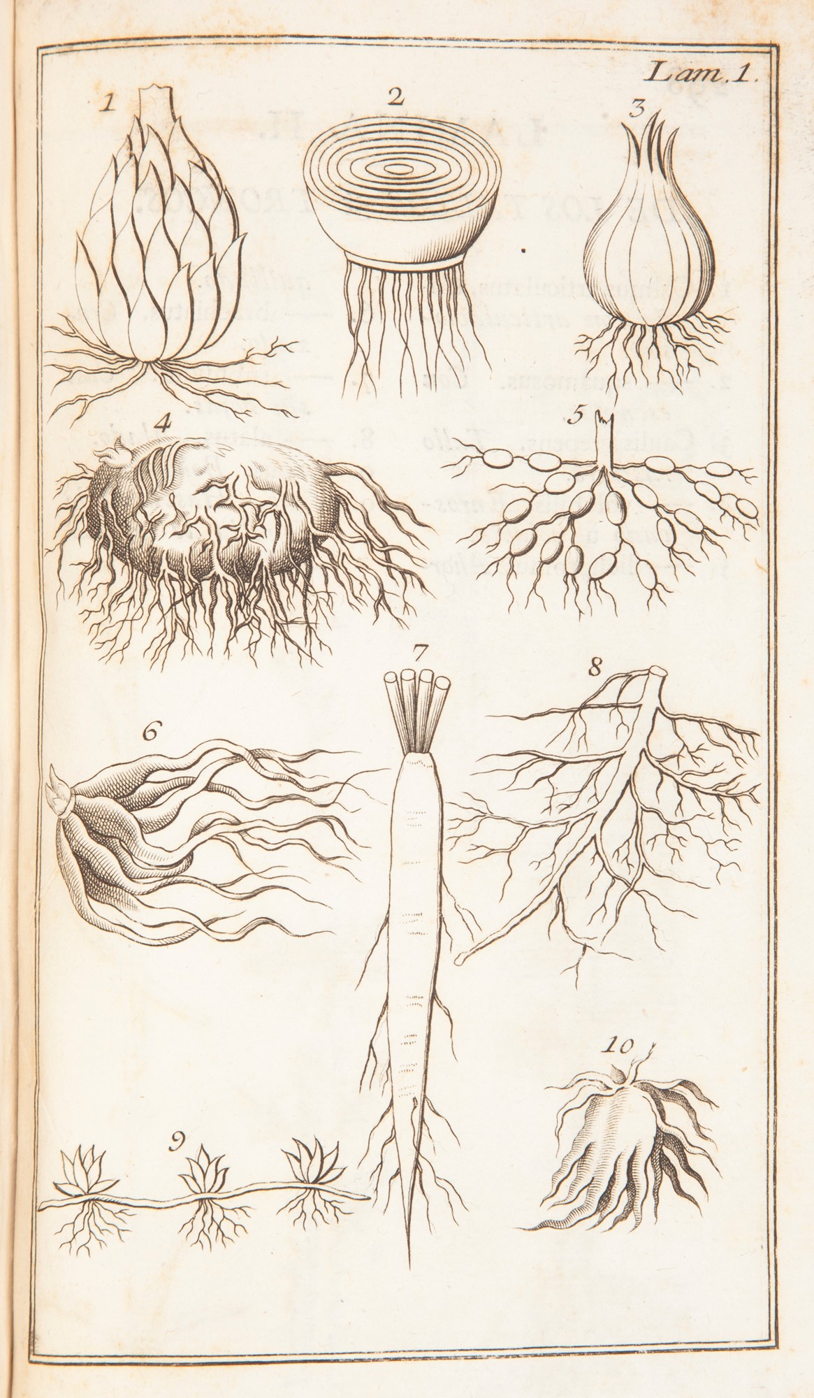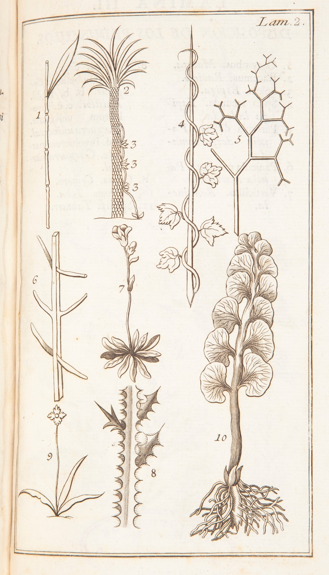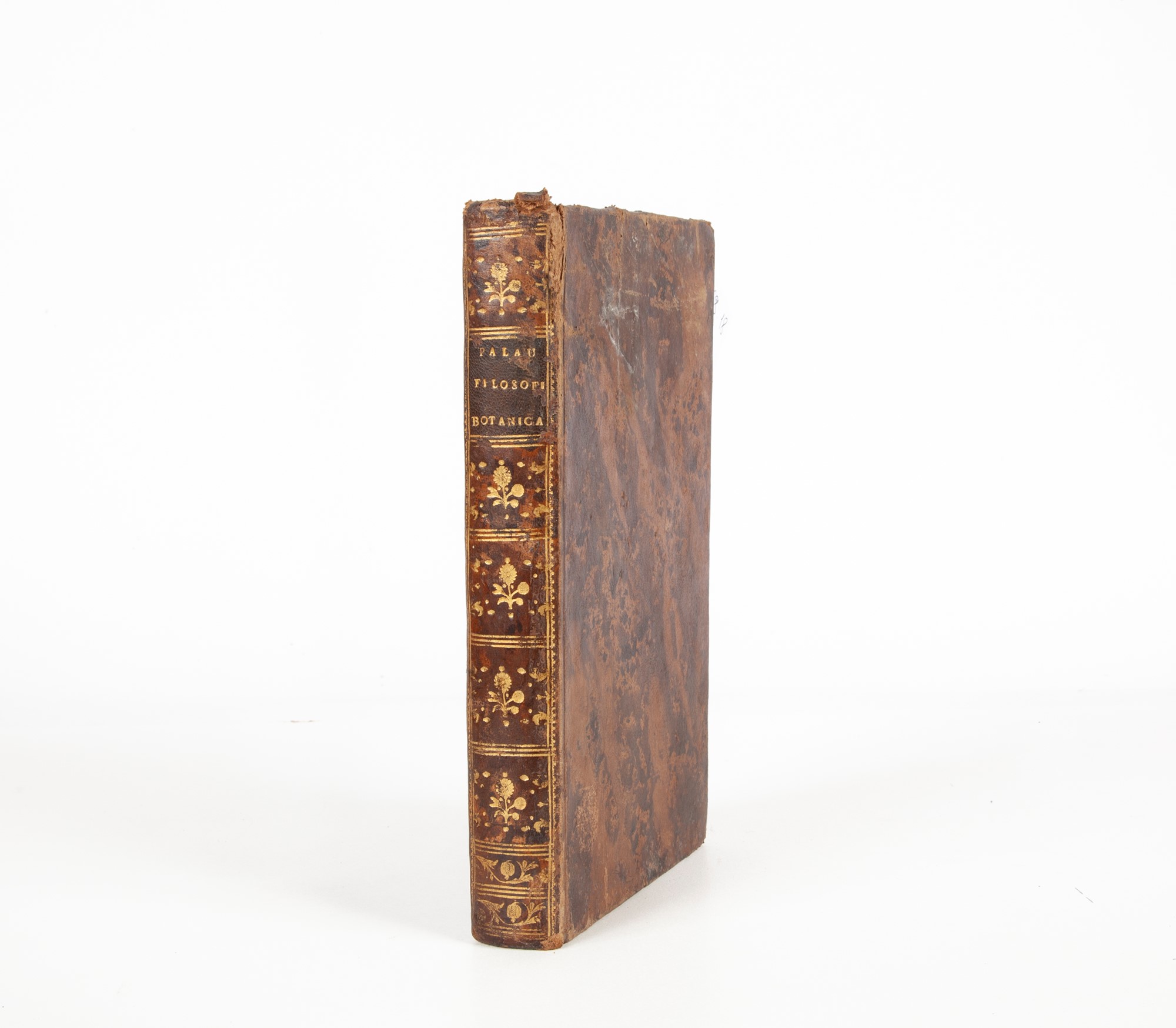 Antonio Palau y Verdera - Explicacion de la filosofia y fundamentos botanicos de Linneo con la que se aclaran y entienden facilmente las instituciones botanicas de Tournefort. Parte theorica. In 8° Illustrato con 9 tavole incise in fine testo con le rispettive legende. Con quest'opera il naturalista, medico e botanico spagnolo, attico presso il Real Jardín Botánico de Madrid completa gli scritti di Linneo che non inserì nella sua opera le piante naturali di Spagna, volgarizzò i nomi latini della piante che tradusse in Castigliano. Legatura coeva in vitello spruzzato con titolo e fregi in oro al dorso. Antonio de Sancha, Madrid 1778 cm 20x13