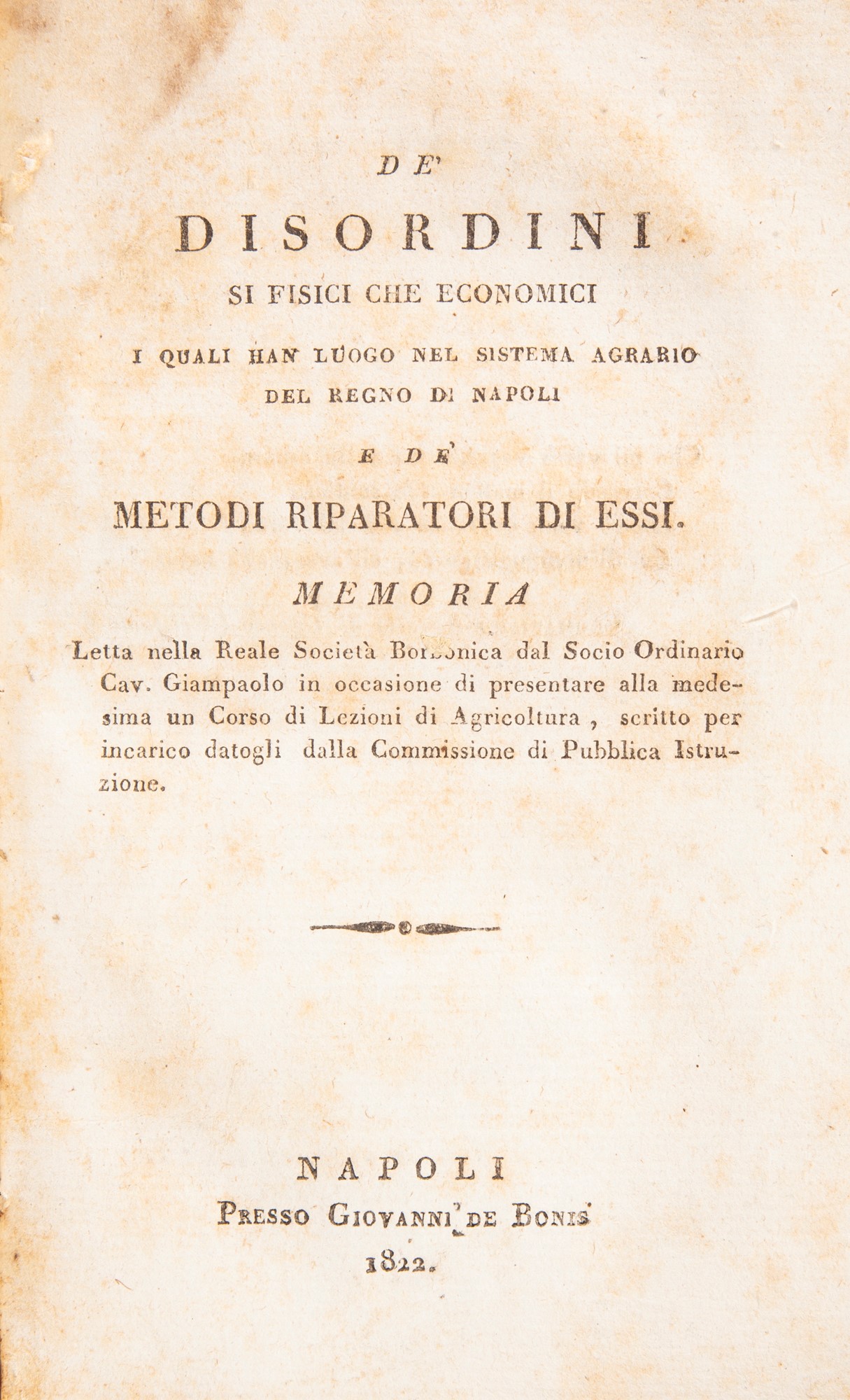 Miscellanea di agricoltura Legatura in cartonato rigido coevo con tassello al dorso XIX secolo cm 22x14